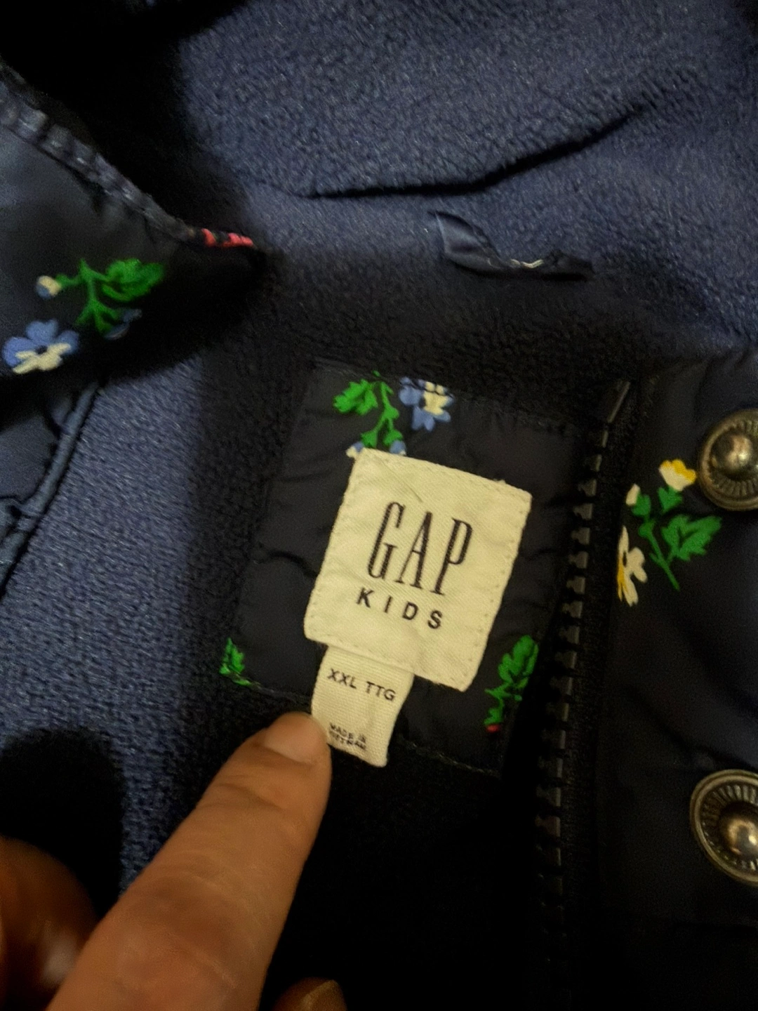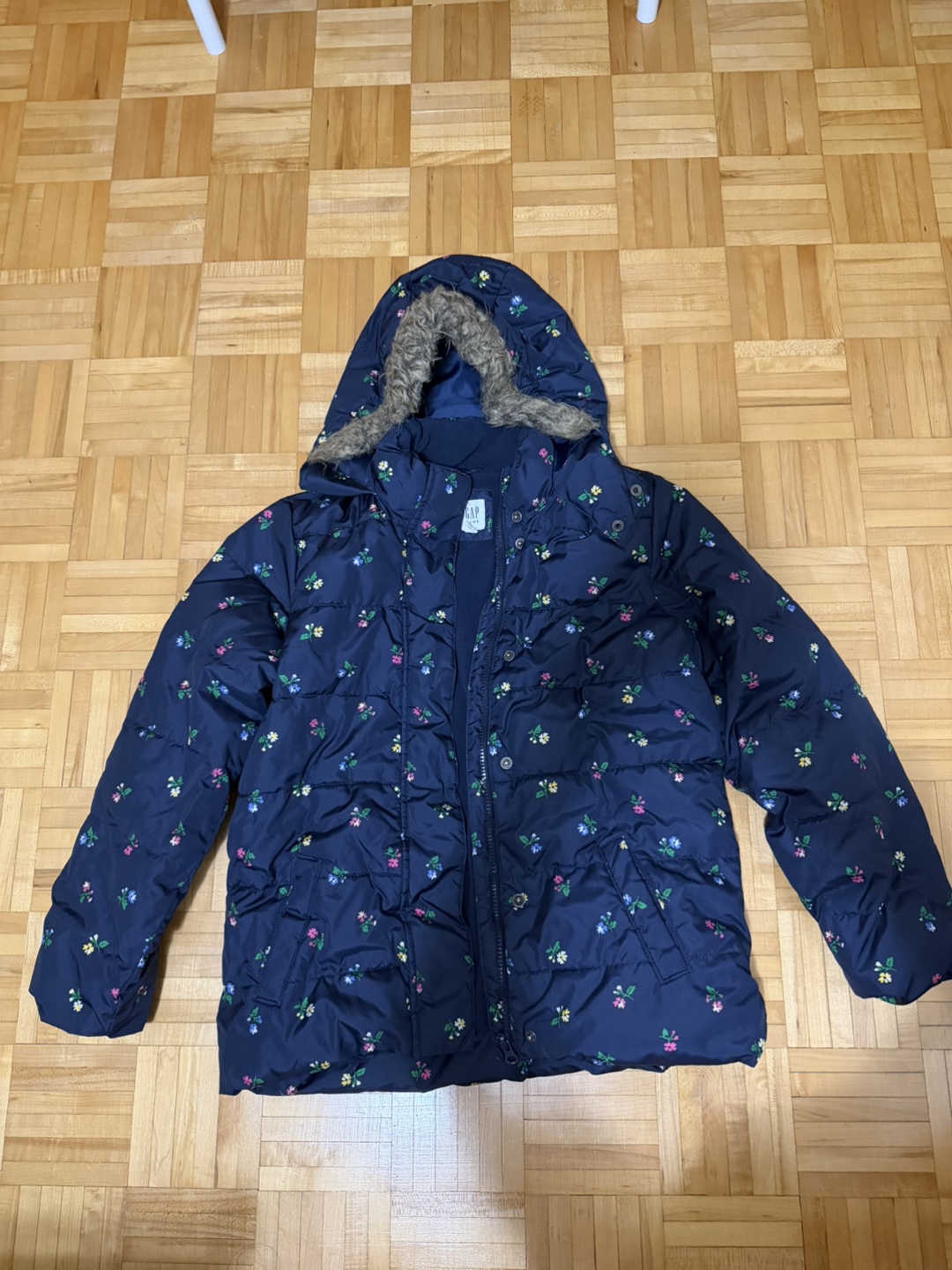 Gap Girls Navy Blue Floral Full Zip Hooded Coat Jacket Size XXL TTG Used but not abused Cash and pick up only near St Clair and Victoria Park (open to other locations nearby, just let me know). Smoke free and pet free home :)