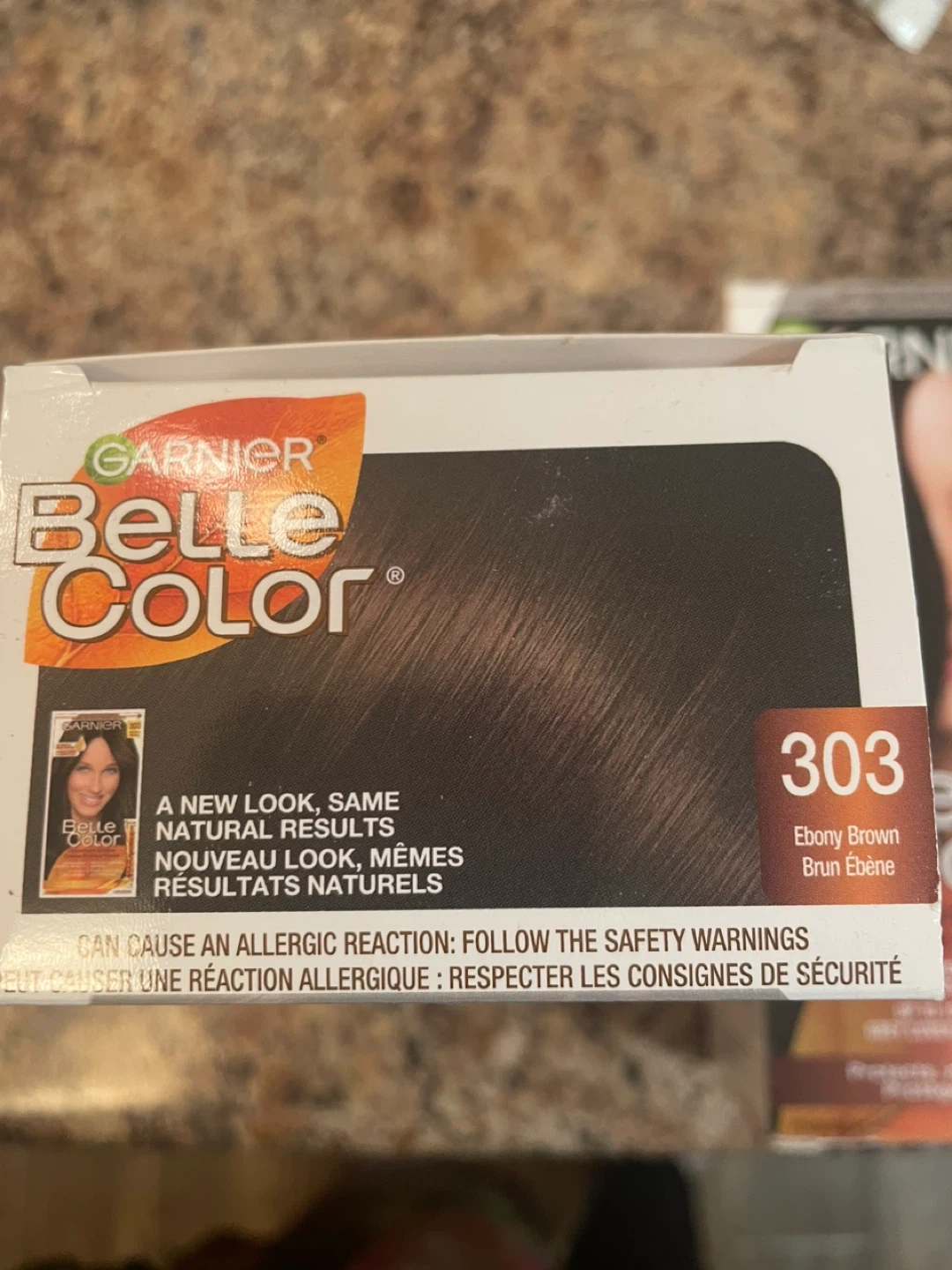 Selling Garnier Belle Color hair dye in shade 303 Ebony Brown. It's a ColorEase Crème formula that guarantees natural results and up to 100% grey coverage. Protects, nourishes, and illuminates your hair