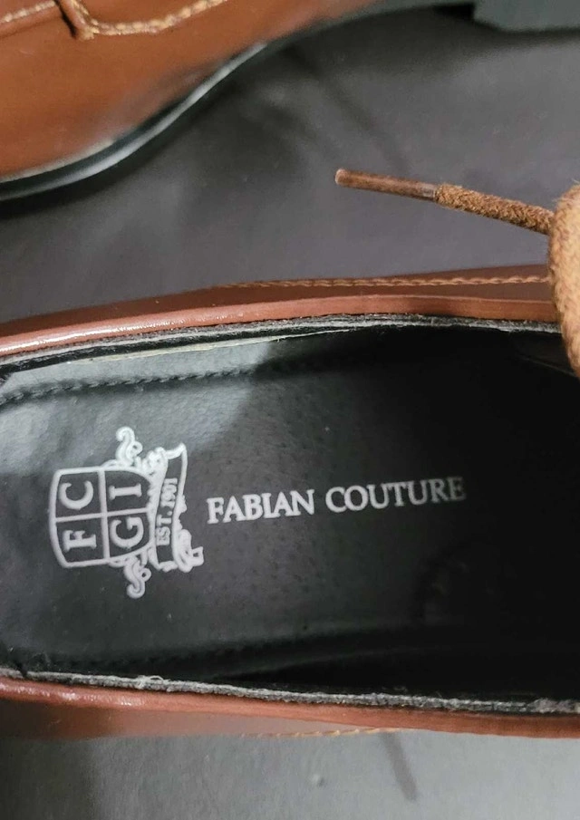 Elevate your style with these Fabian Couture dress shoes, in mens 9.5. These lace-up dress shoes are a timeless addition to any wardrobe.