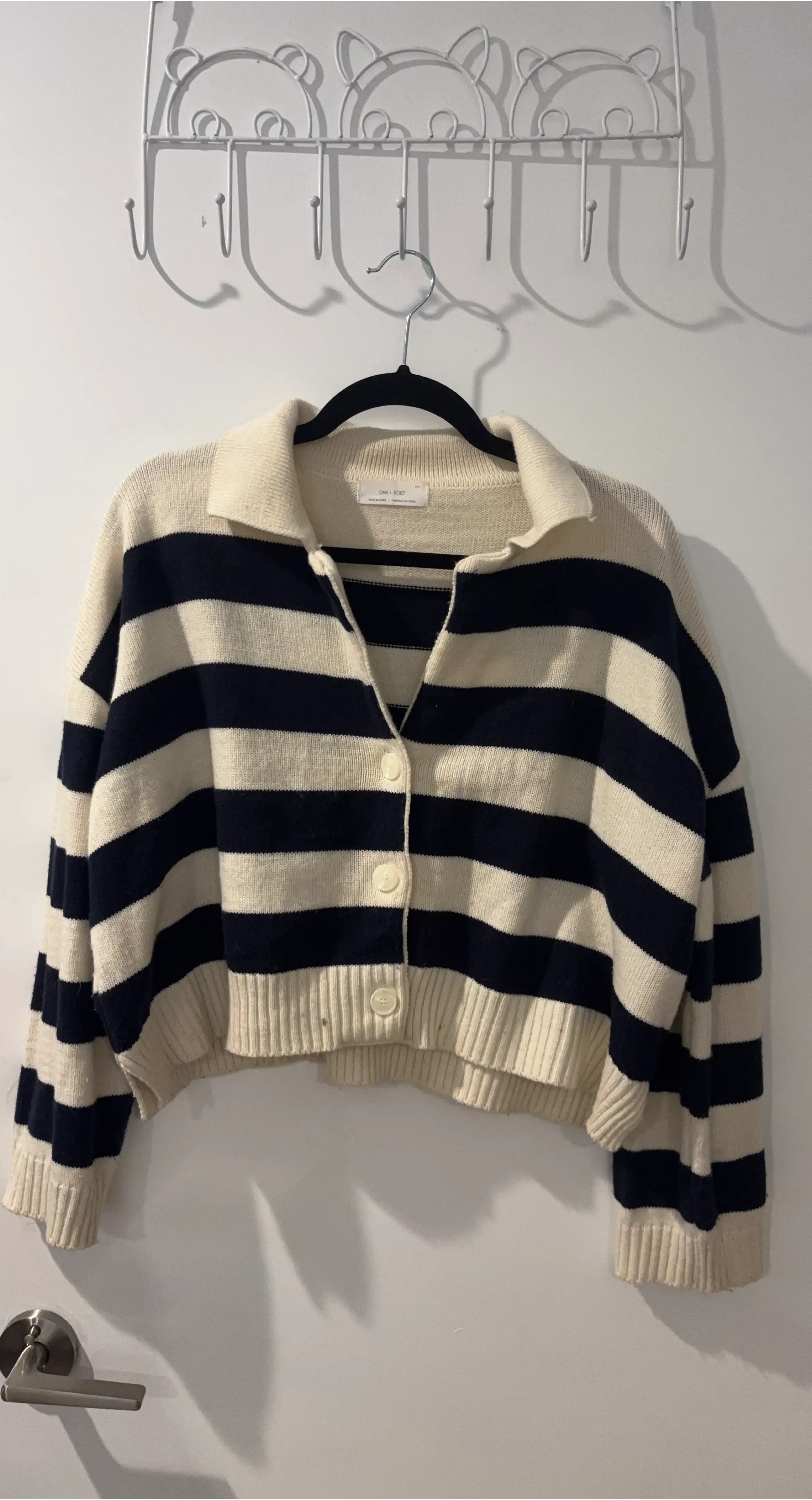1 / 21 / 2Buy & SellStriped Cardigan OAK & FORTStriped Cardigan OAK & FORT$10Perfect for layering or wearing on its ownConditionOkaySizeMBrandOAK & FORTWHERE TO MEETCheck LocationView MapSELLERverifiedJen PEast Vancouver17010 reviews1 chats·0 favorites·11 viewsSEND CHAT TO SELLERHi Jen P! I’m interested in your listing.Hi Jen P! I’m interested in your listing.Get the Karrot app to chatSign In to chat