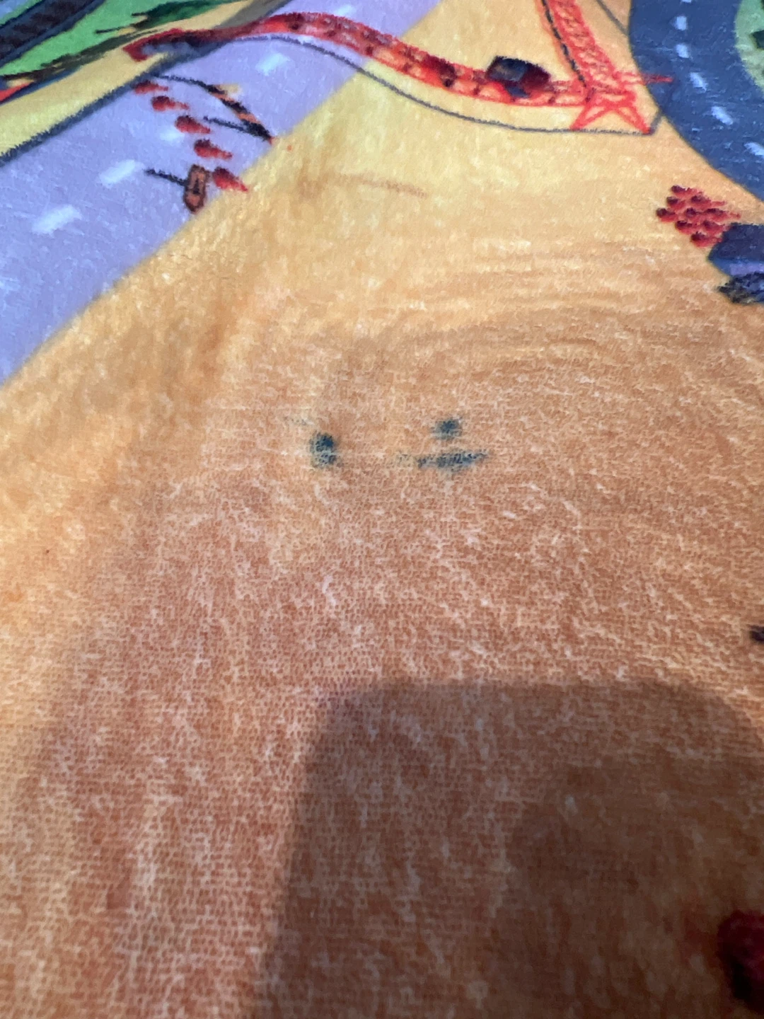 Selling a gently used kids' play mat rug! It features a fun design with roads, buildings, and other cool details. Perfect for creating a play area for your little ones! The last picture show some blue markers mark on the play mat, but it will be washed off with water.