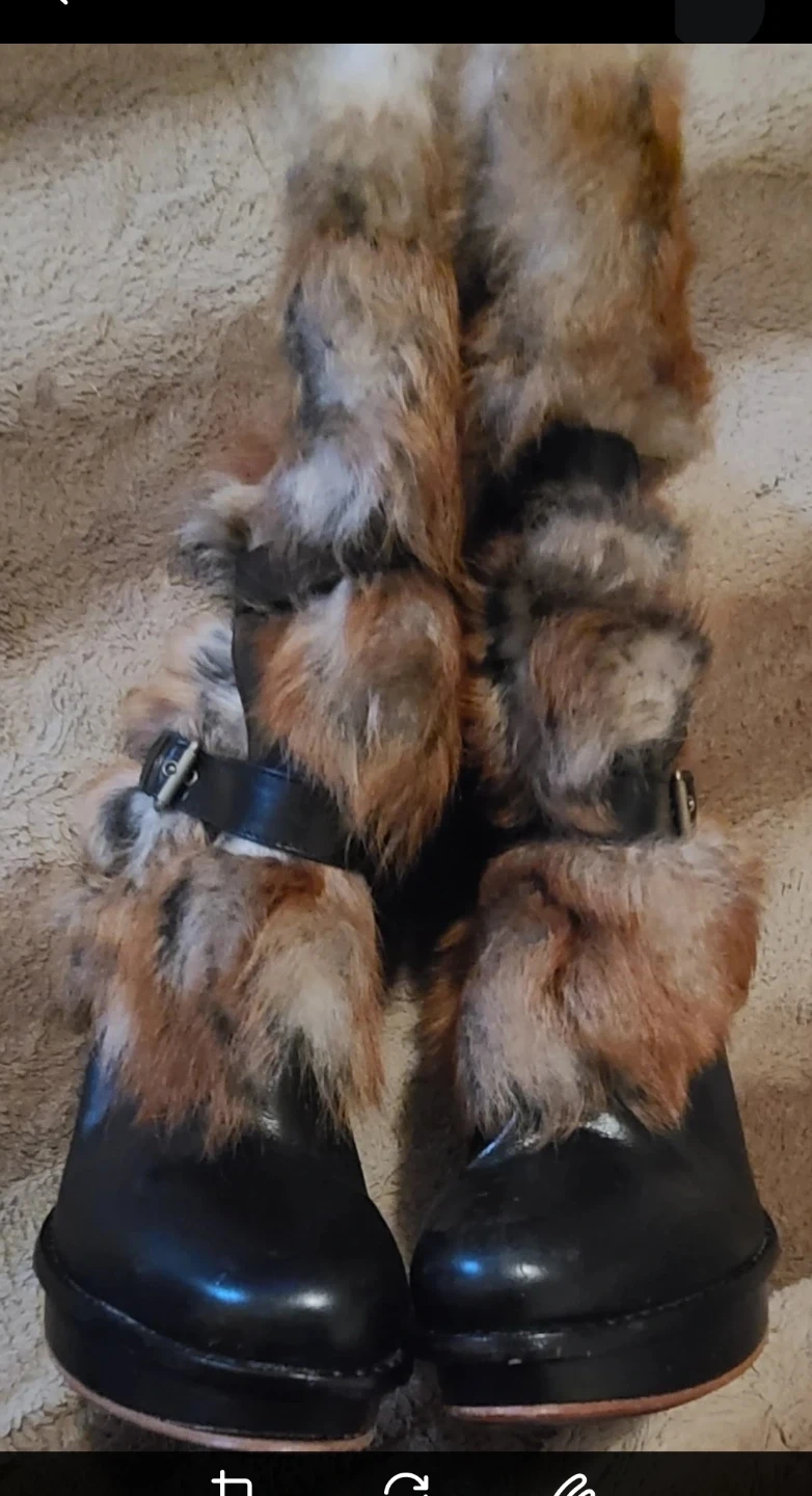 UGG Black Leather & Fur Heeled Boots #Cleanout
