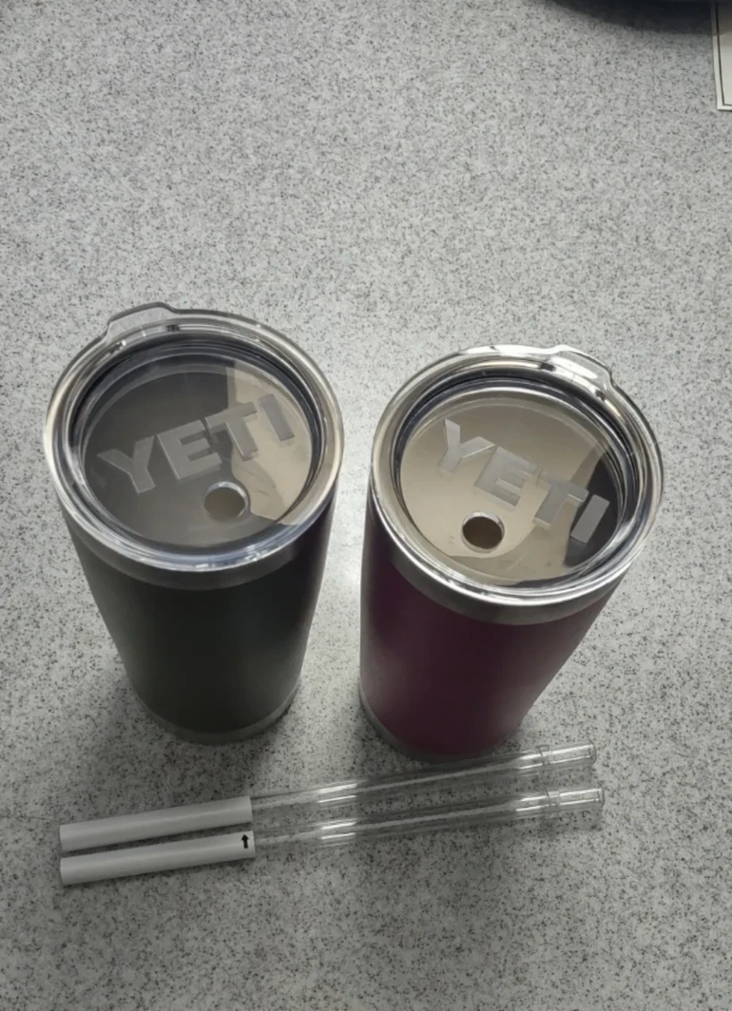 1. Selling a YETI Rambler 20 oz tumbler in the Prickly Pear Pink & Kaki color It's in great condition and ready to keep your drinks hot or cold. This retails for $39.98 + tax ($45) each At home, you can use it as a mug without a lid for hot tea or coffee. Selling price for $11. Each (without lid & straw) $20 both Selling price for $20. Each (with lid & straw) 2. (NEW) YETI lid and straw 1.(NEW) 2 YETI lid and straw Selling for $10. Each Purchase price for $15. Amazon. Ca