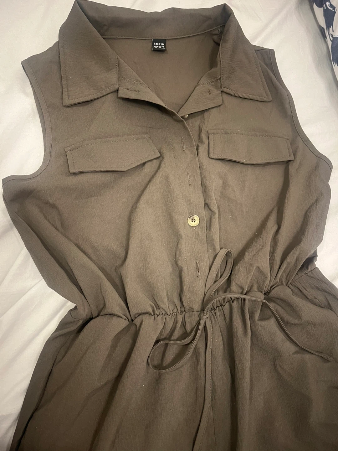 Selling a cute Shein romper in olive green! It's a size medium and in great condition. Perfect for summer days!