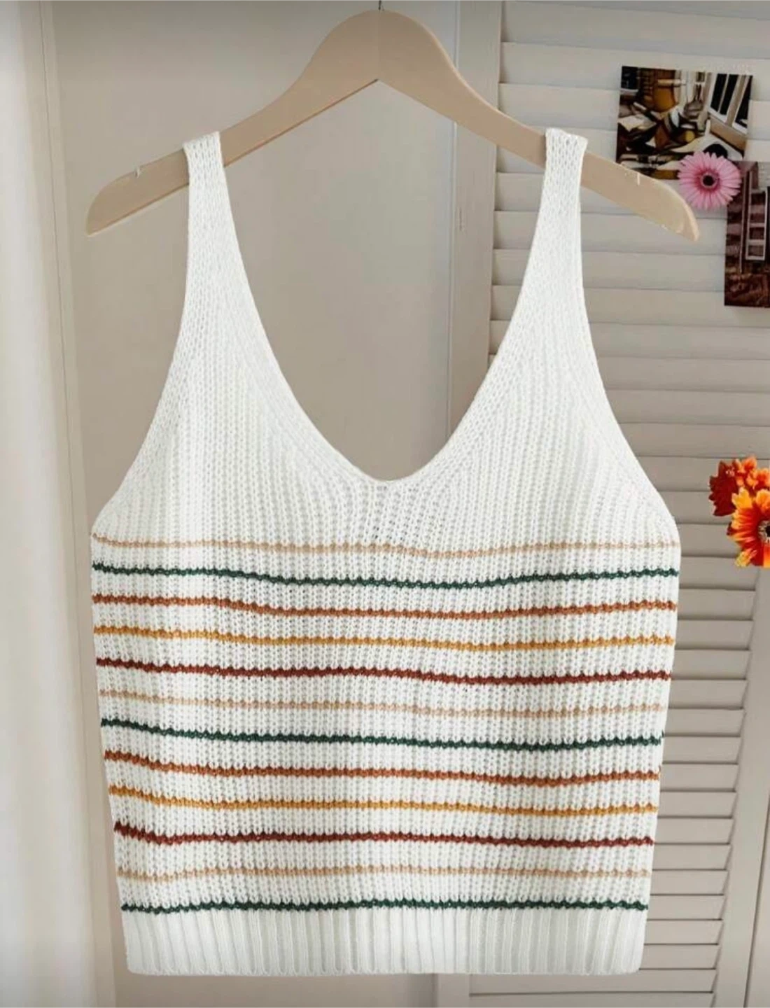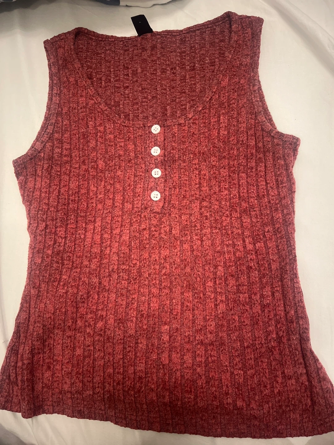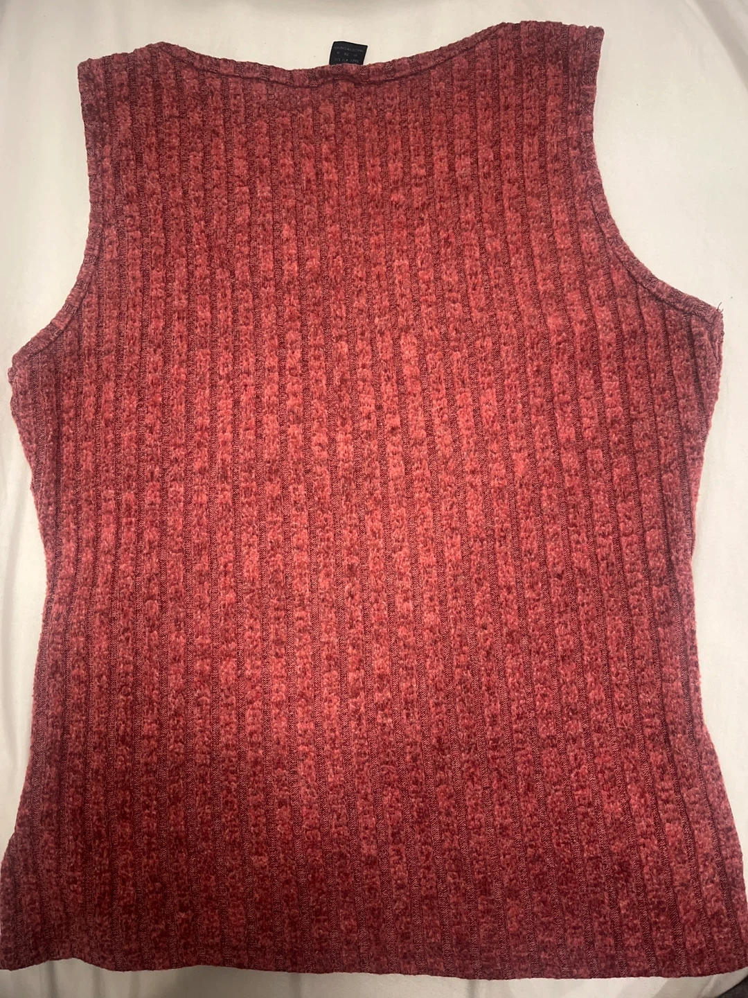 Here's are 2 cute tank tops one is burgundy ribbed knit tank top & another is white with fee coloured lines. It's in great condition and ready for a new home. Perfect for layering or wearing on its own during warmer weather. The material is soft and comfortable, making it a great addition to any wardrobe