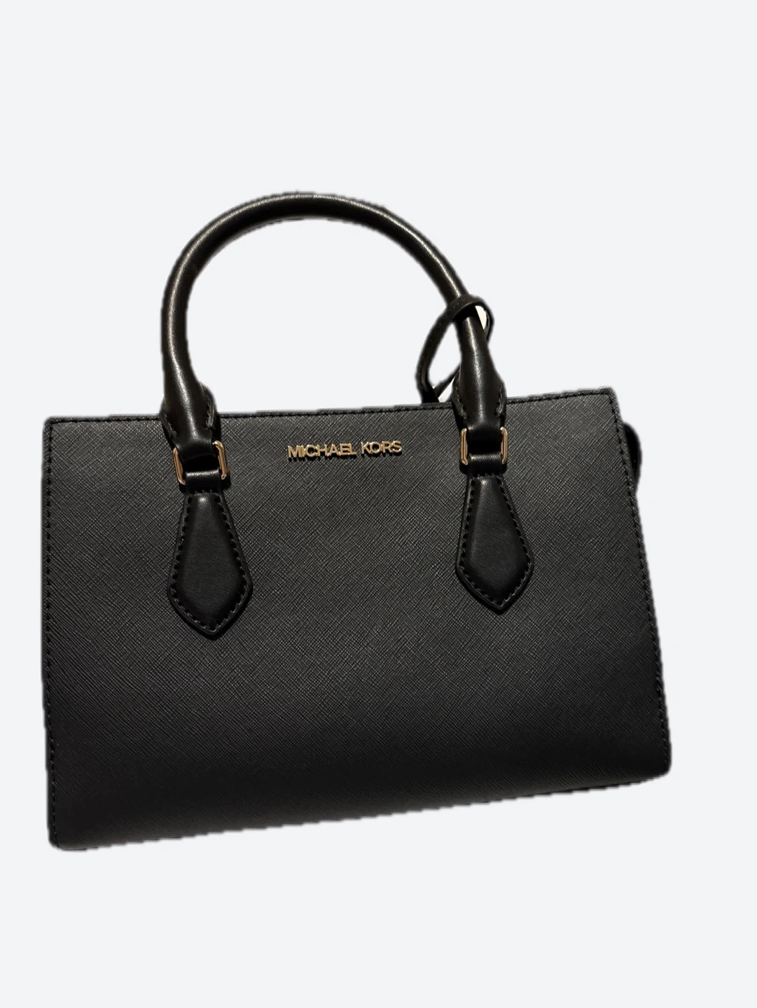 Here's a stylish black leather satchel from Michael Kors! It's a great size for everyday use and is in excellent condition