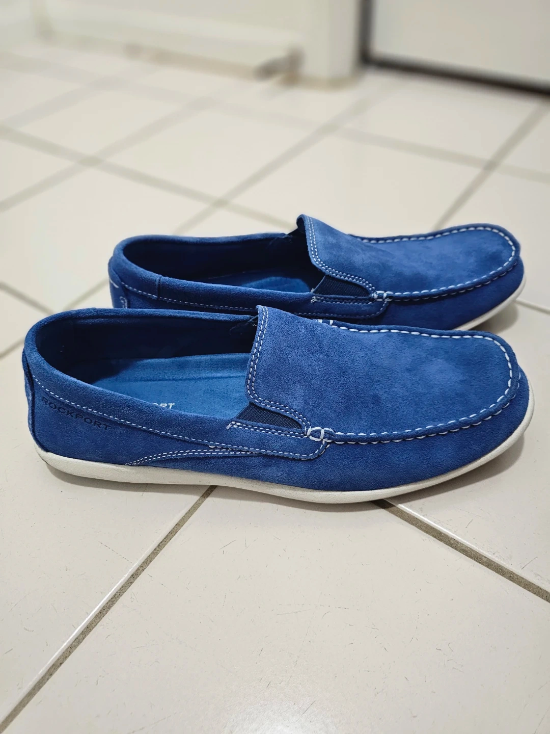 Selling a pair of Rockport loafers in a nice blue suede! They're a men's size 9. Loafers were never worn, only wore to try and walk around indoors. No box. These are super comfy and stylish, perfect for everyday wear. Check out the photos for a closer look!