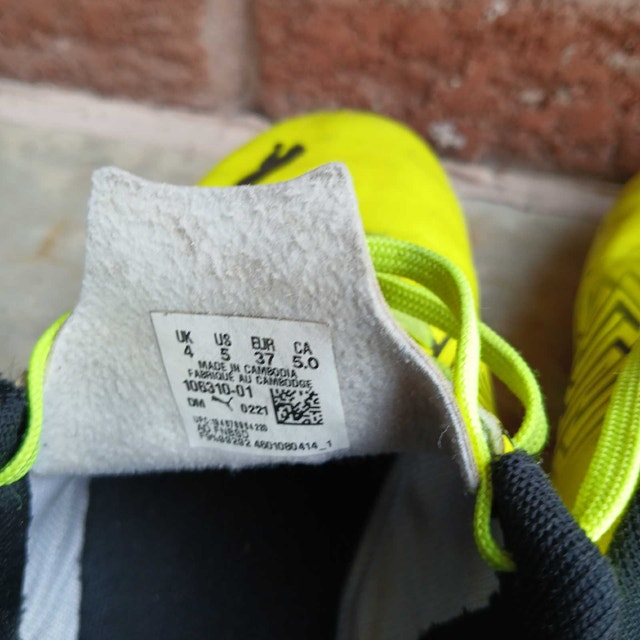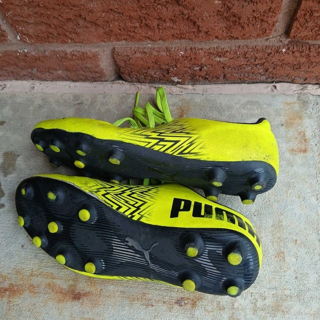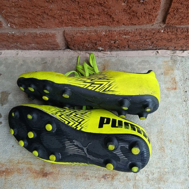 Soccer Shoes Puma brand name. Size 4 Youth. Very good condition. Cleats, arches, insoles have lots of life left, cleaned, ready to wear. $25. Call/text 416 5593166. Get ready for Soccer season!
