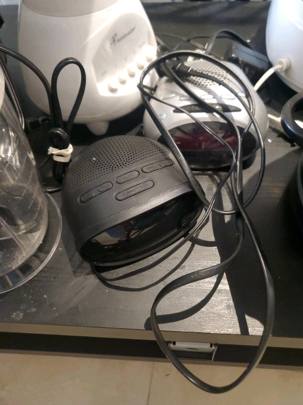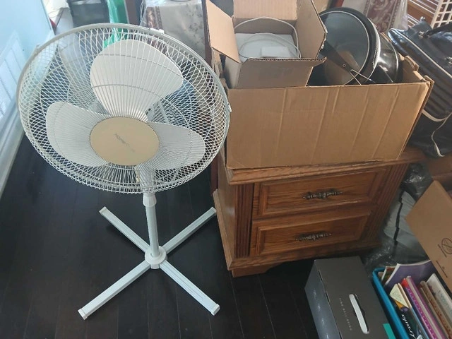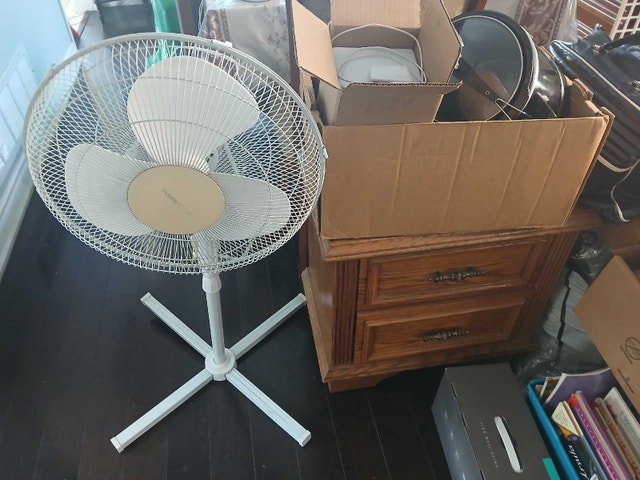Clock Radio, $10 each. Homesence Oscillating fan $15. Sold.