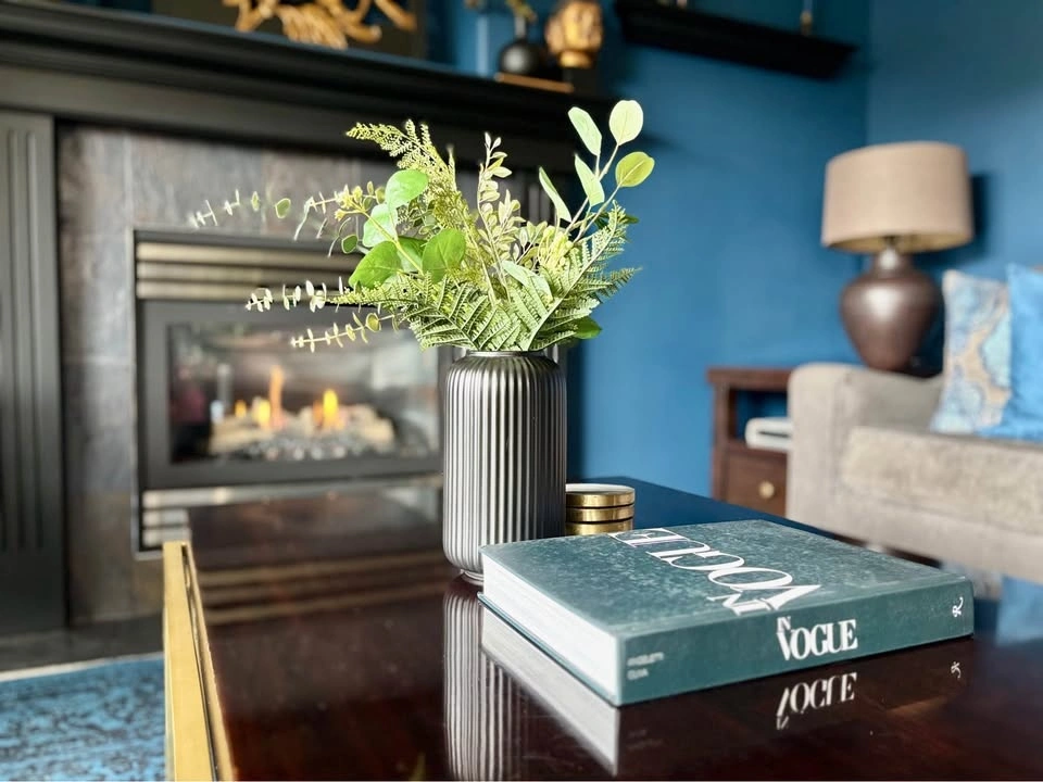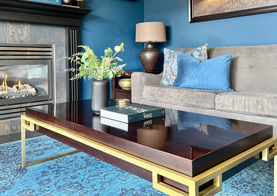 Gorgeous solid wood coffee table with brass frame and legs
