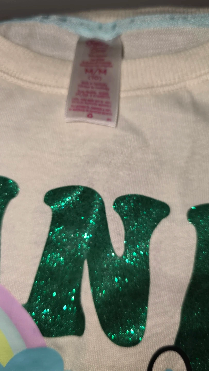 #gifting a cute Justice pajama set for girls! The top is a creamy white colour with a fun floral and rainbow design. The bottoms have an all-over floral print in pastel shades. Size is M 10