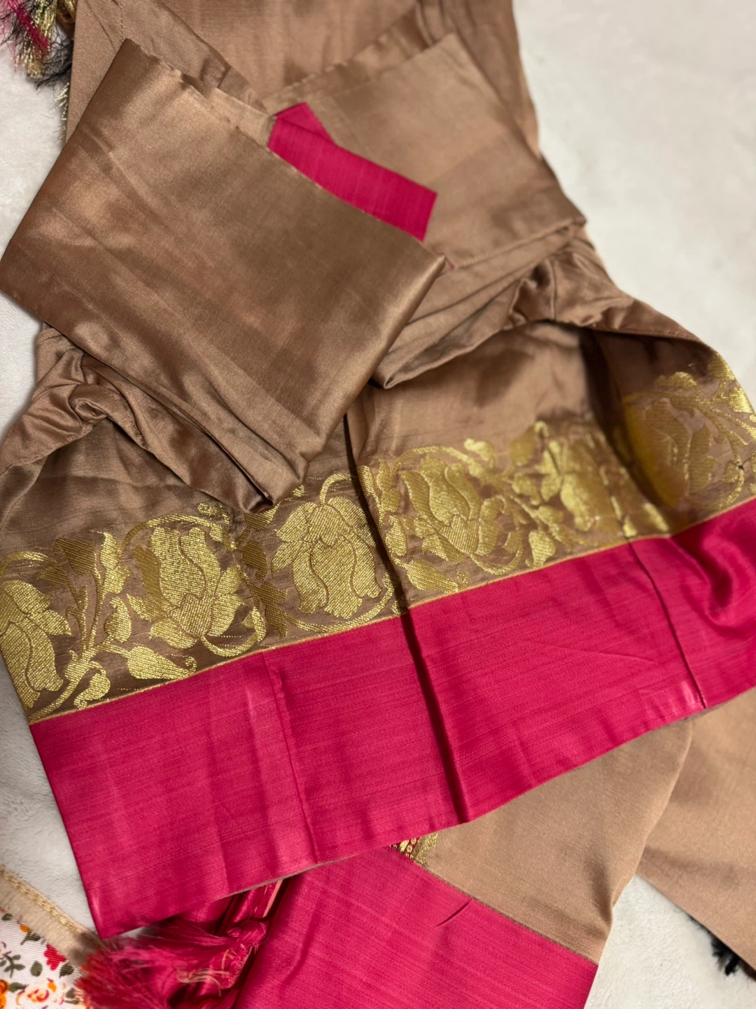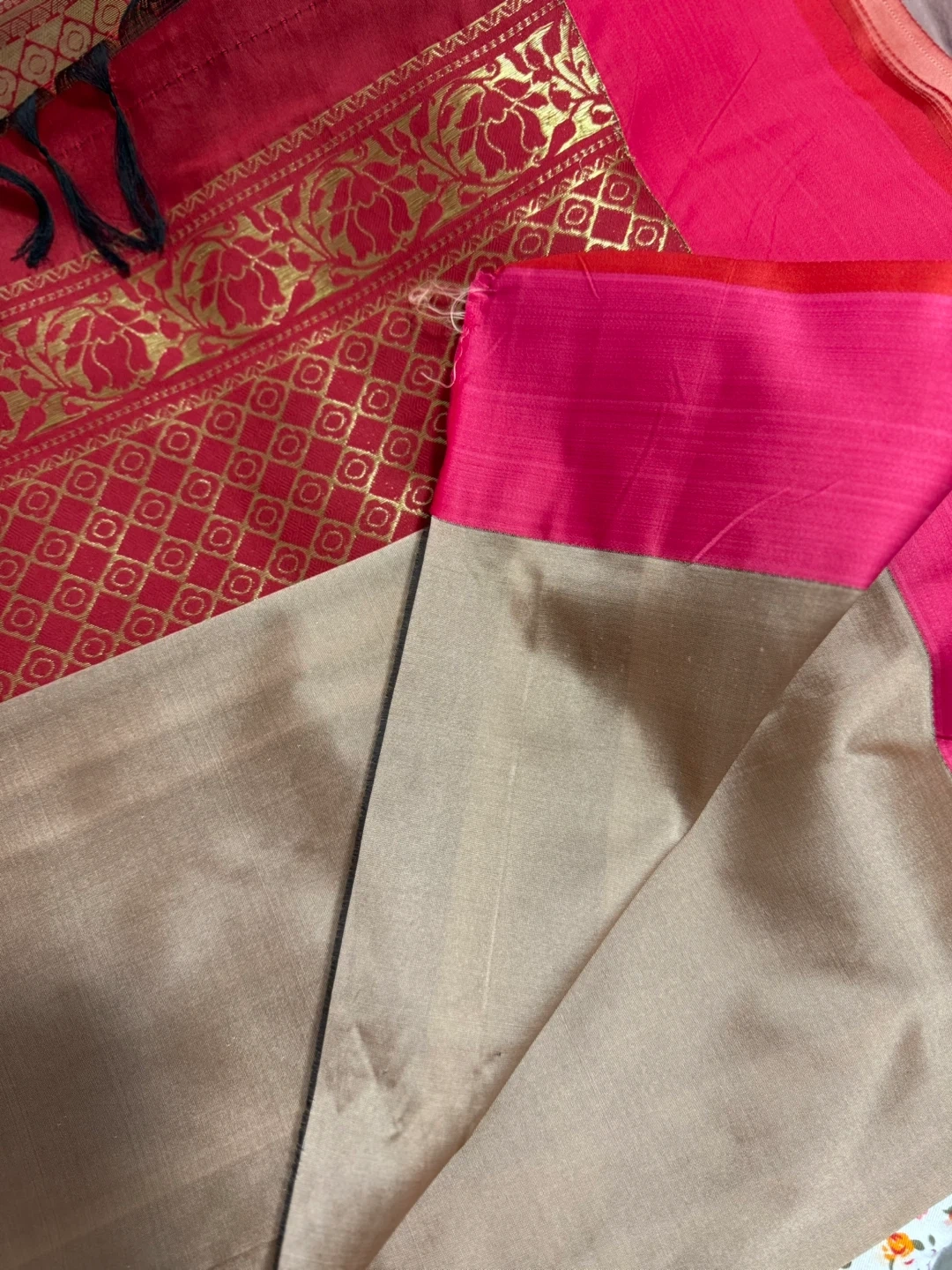 Selling a beautiful saree from Saree House Fashion Creator. The saree features a lovely combination of colours and intricate designs. It's in great condition and ready to add a touch of elegance to your wardrobe