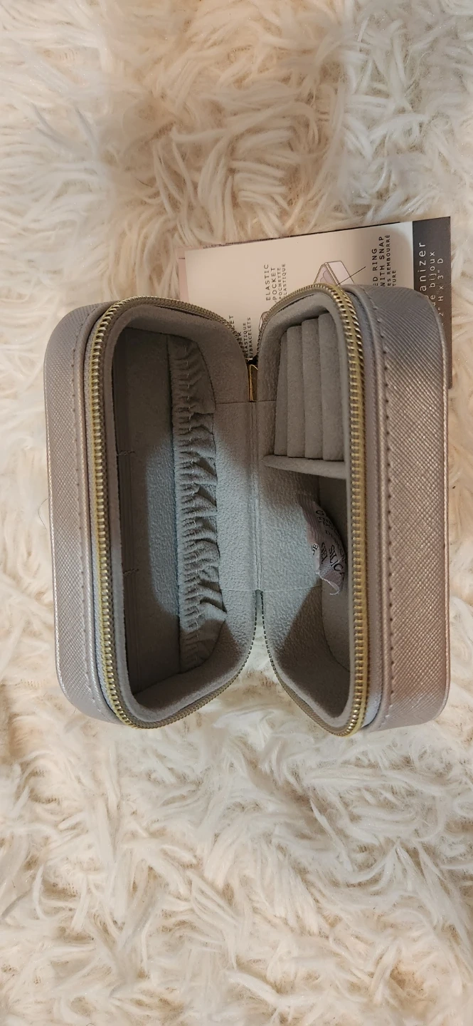 I have a new Rachel Zoe jewelry organizer for sale! It's a stylish and compact way to keep your jewelry safe and organized, whether you're at home or travelling. The organizer features compartments for rings, bracelets, and other small accessories, making it a perfect addition to your collection