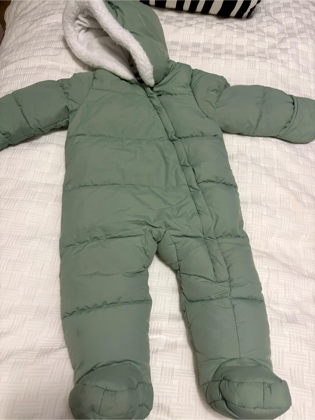 Here's a cozy George snowsuit for your little one! It's in good condition and perfect for keeping them warm during the winter months. Size is 12-18M.