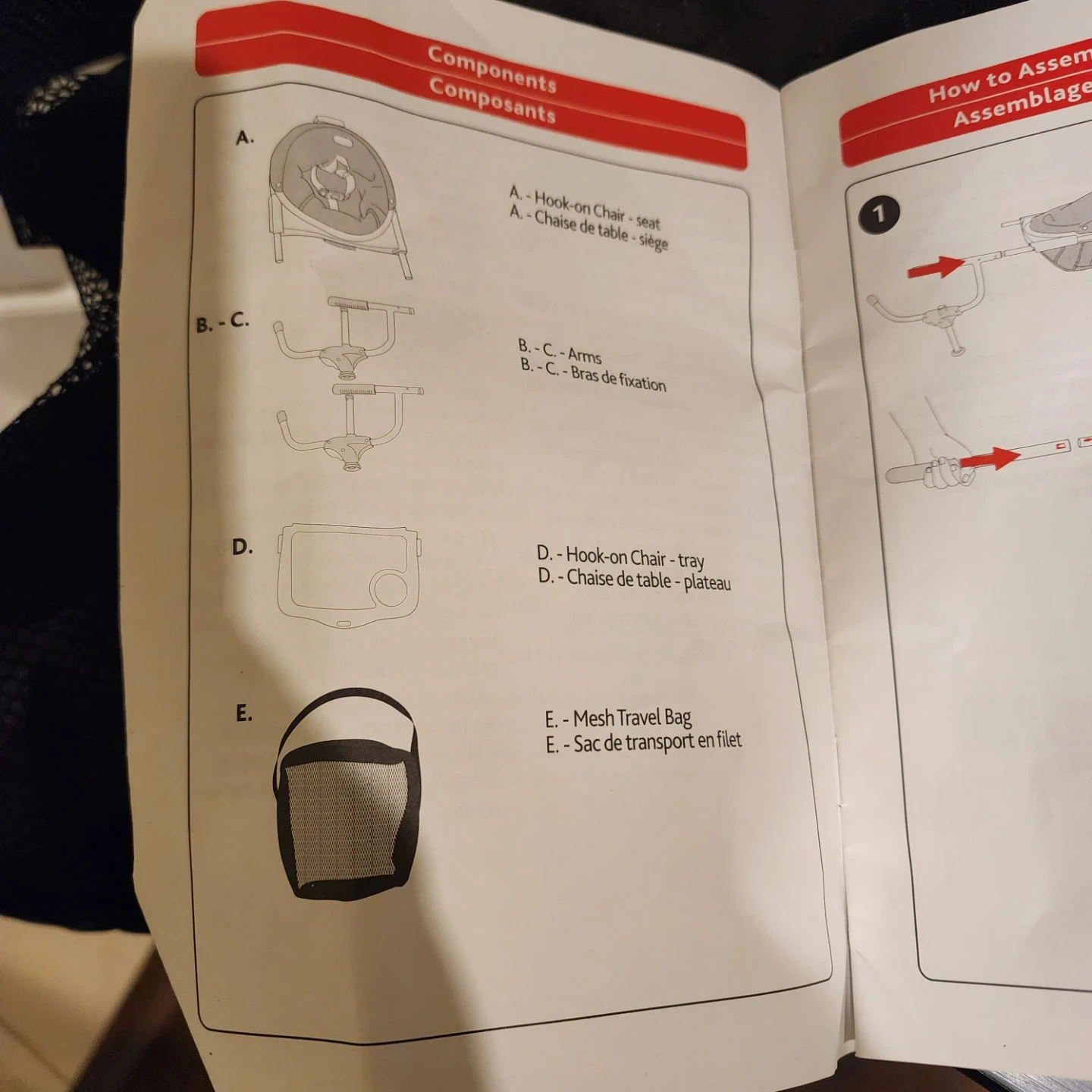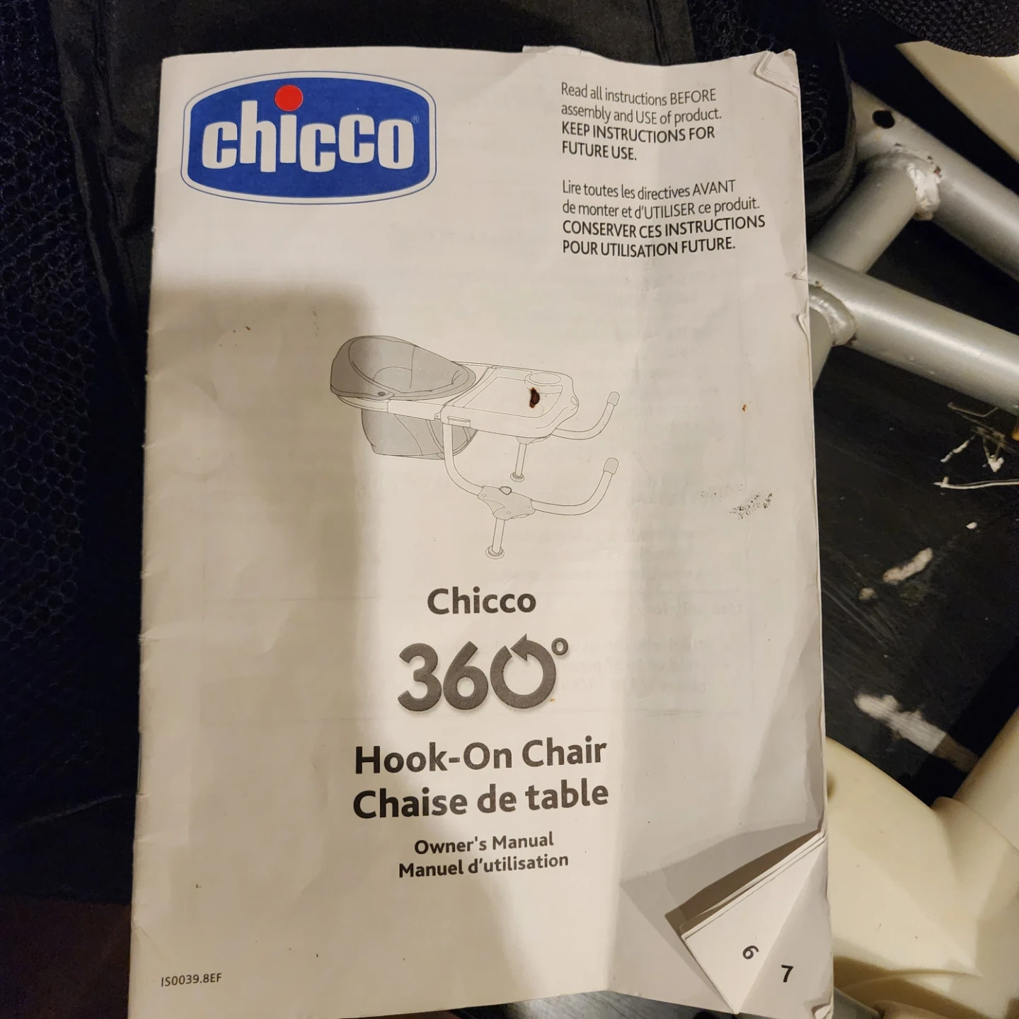 Selling a Chicco 360° Hook-On Chair. It comes with all the components including the seat, arms, tray, and mesh travel bag. Also includes the owner's manual