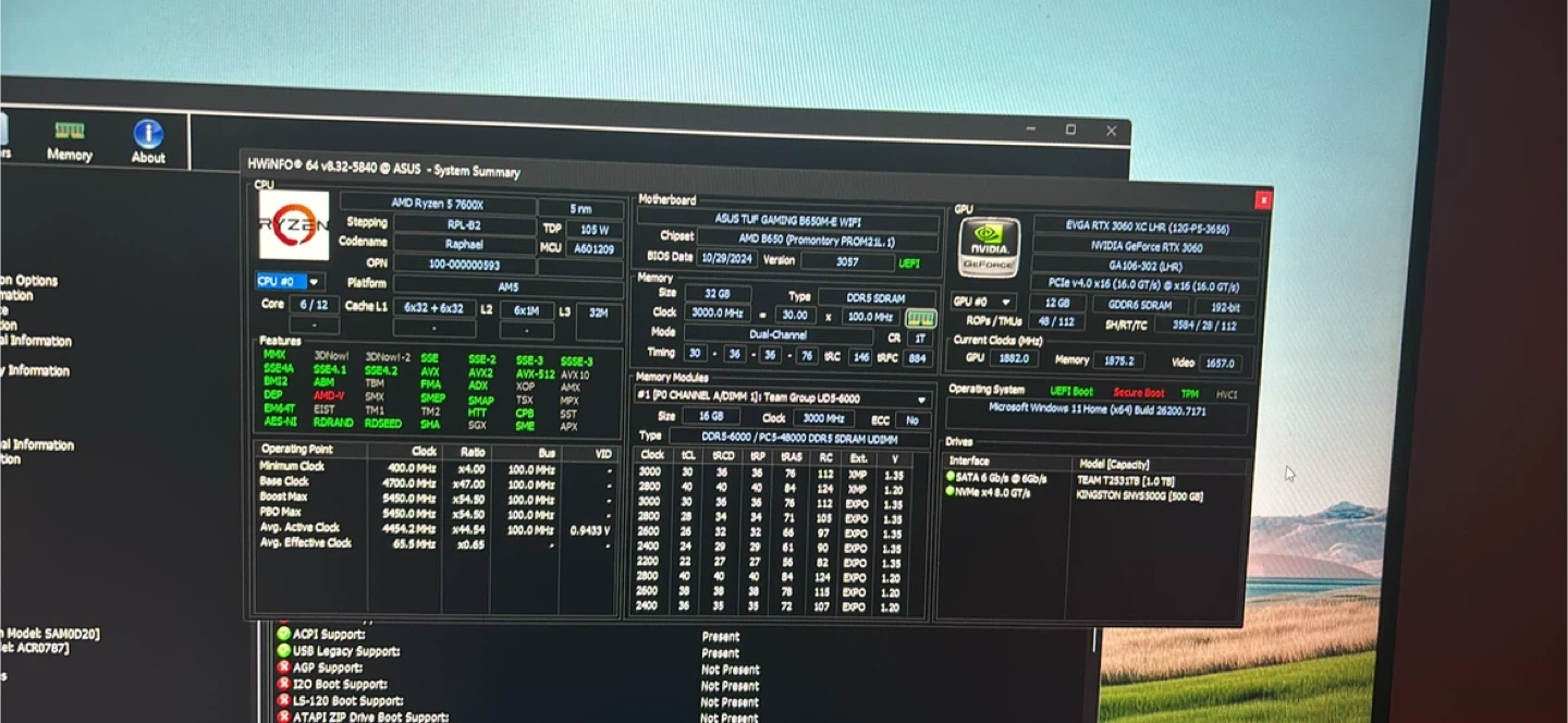 • RAM: 32GB T-Force DDR5 (6000 MT/s)