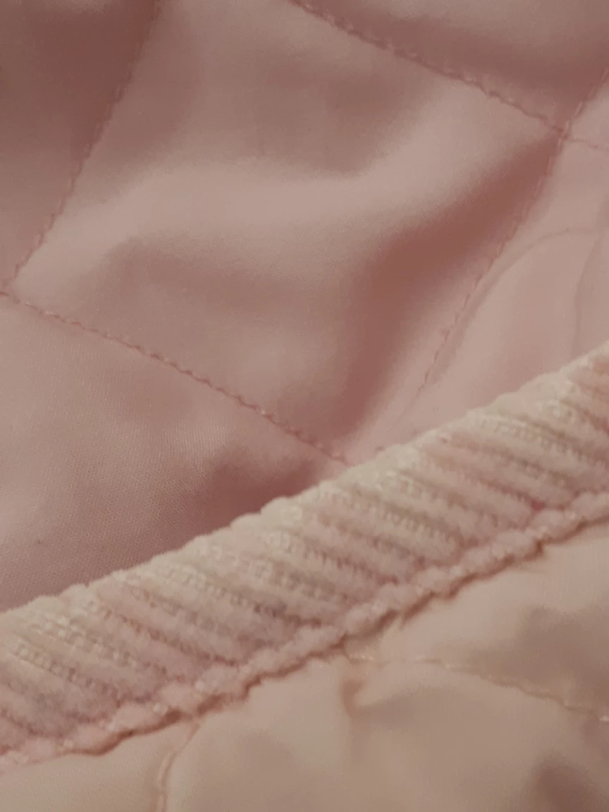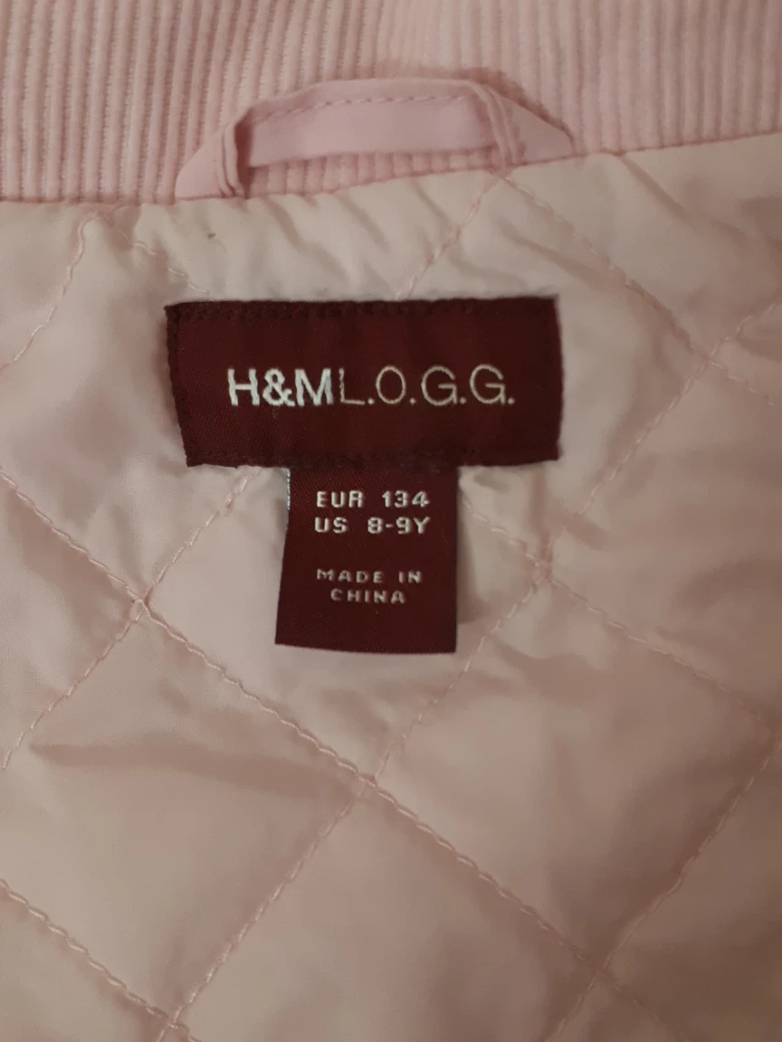 Giving away a cute H&M L.O.G.G. pink quilted jacket. The tag says it's a size EUR 134, which is US 8-9Y. It has a loose fit and is perfect for layering. Sleeve's cuffs can be turned down to extend wear time to the size 10-12. Some signs of wear on the inner side of sleeves. Please refer to the third picture.