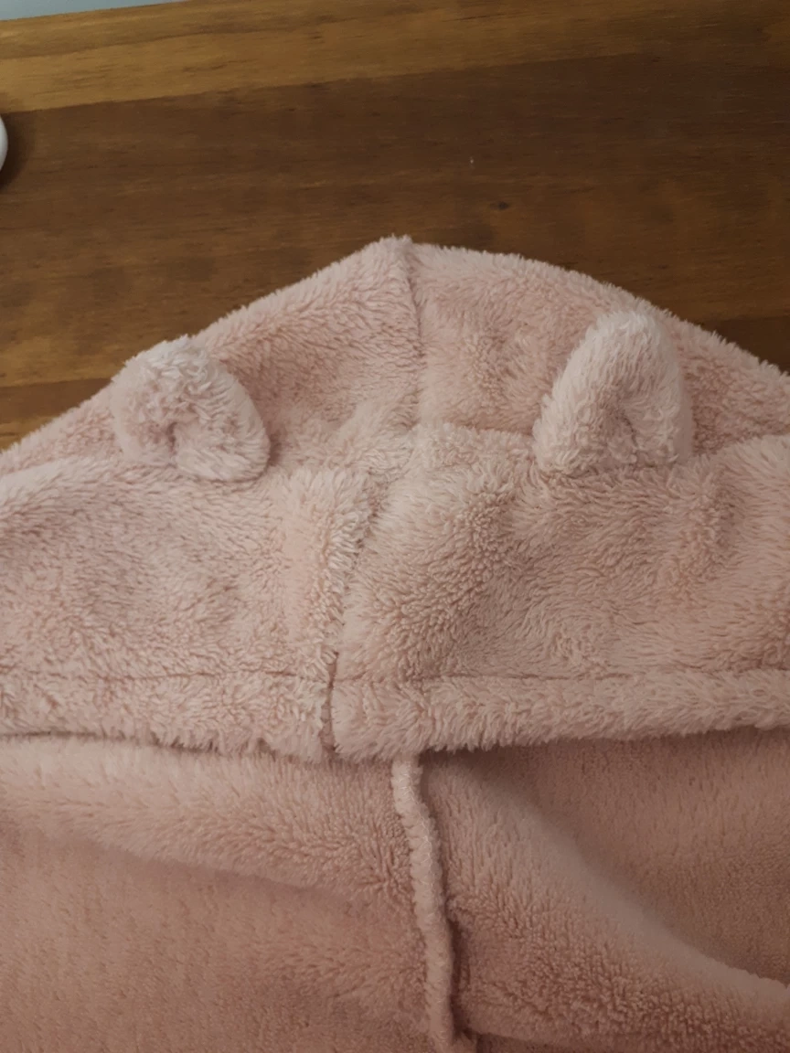 This is a super cute pink hoodie with bear ears on the hood! Super soft and comfortable inside out. Was most beloved item in my daughter's wardrobe. Very well made of high quality materials. Washes well, and still looks perfect regardless extensive wear.