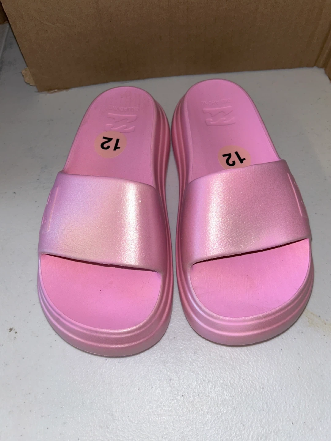 Selling a pair of Billabong slides in a pretty pink color! They are a size 12.