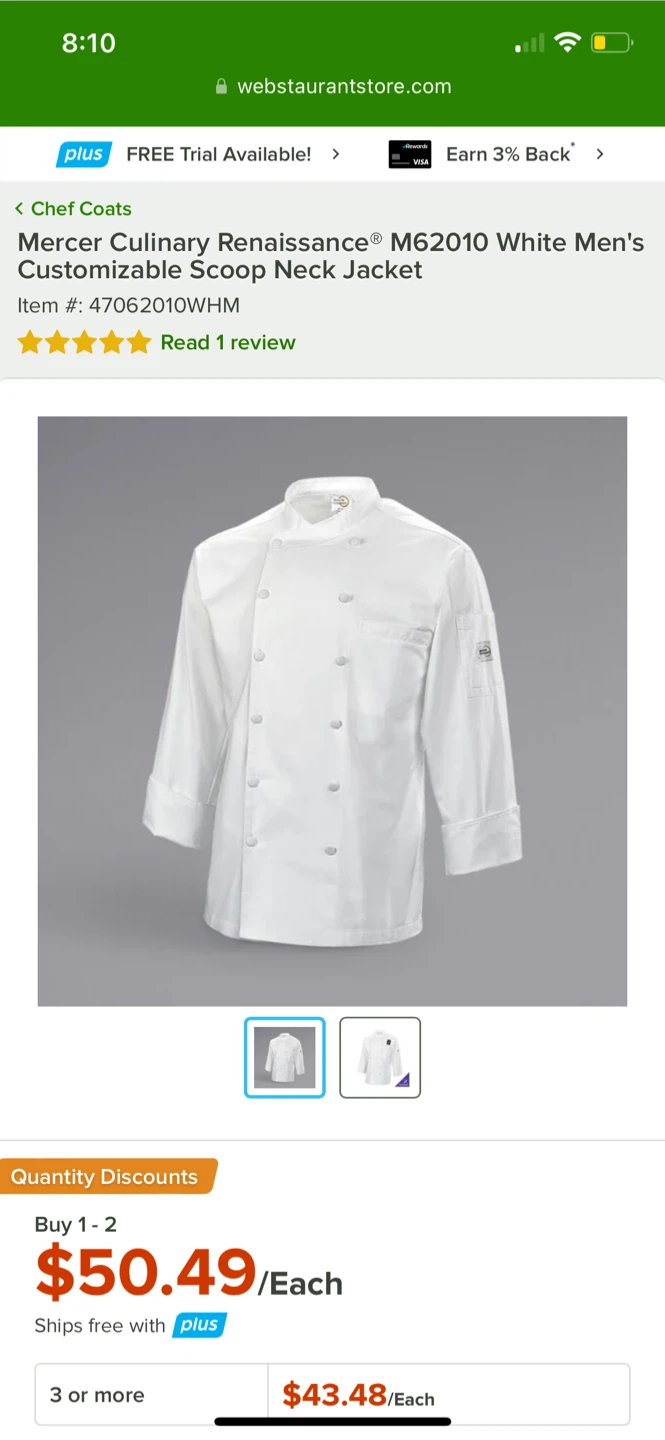 1 / 31 / 3Buy & SellMercer Culinary Renaissance Chef Coat - Size 3XMercer Culinary Renaissance Chef Coat - Size 3X$17Selling a Mercer Culinary Renaissance M62010 white men's chef jacket. It's in great condition and ready for a new kitchen! The size is 3X.WHERE TO MEET666 Greenwich StView MapSELLERverifiedJulio zGreenwich Village47551 reviews0 chats·0 favorites·34 viewsSEND CHAT TO SELLERHi Julio z! I’m interested in your listing.Hi Julio z! I’m interested in your listing.Get the Karrot app to chatSign In to chat