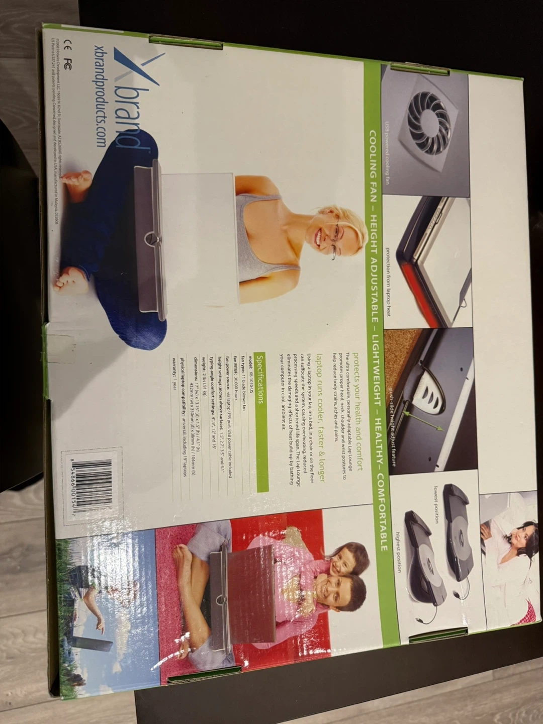 Selling a brand new Xbrand Lap Lounge! It's a super comfortable lap desk with a cooling fan, perfect for working or relaxing on the couch, bed, or floor. It's height adjustable and lightweight, making it easy to take on the go. The box is included!