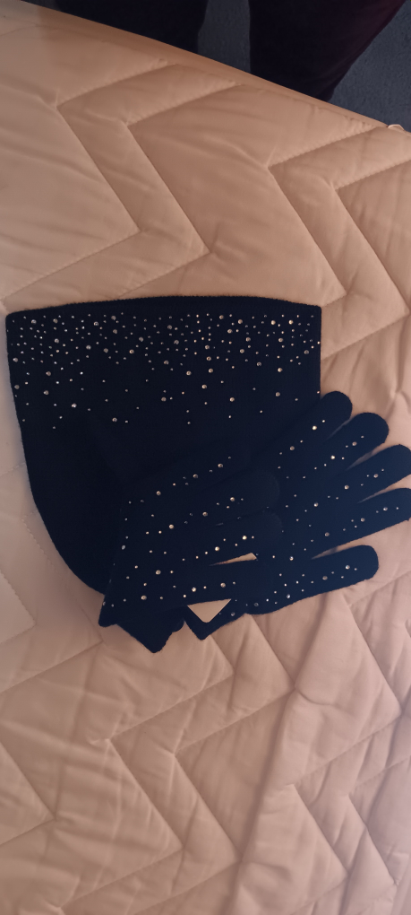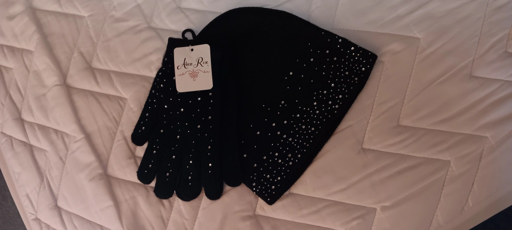 Sparkly New Alexa Rose Black Hat & Gloves Set