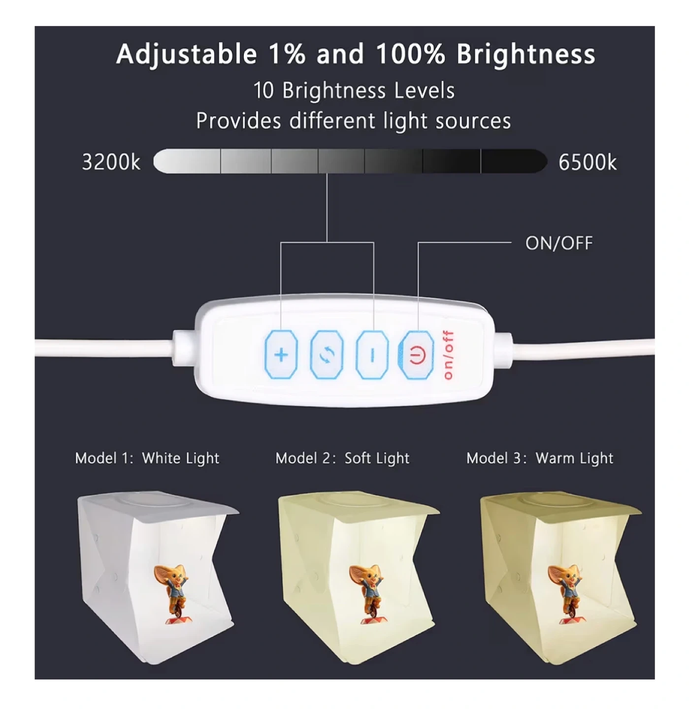 It also has adjustable brightness with 10 brightness levels and provides different light sources.