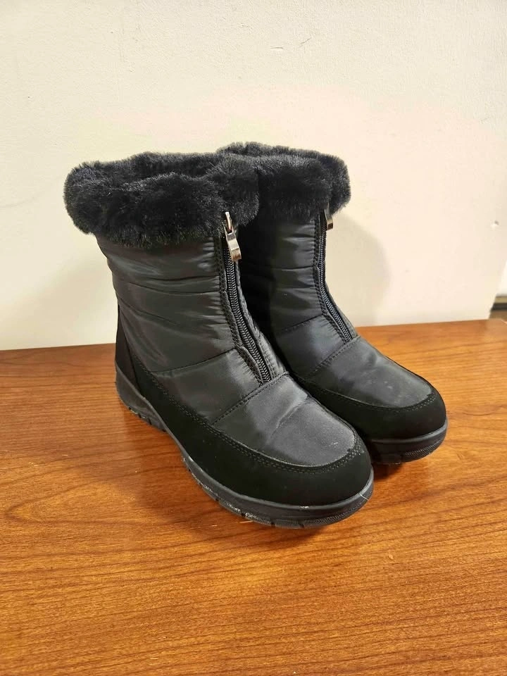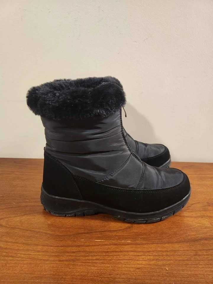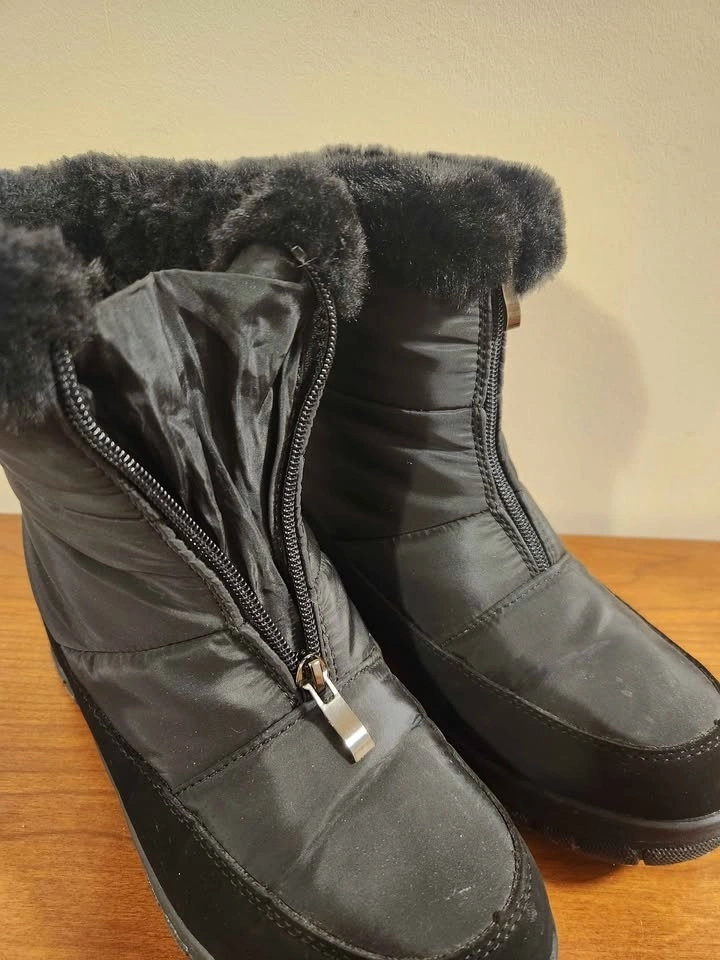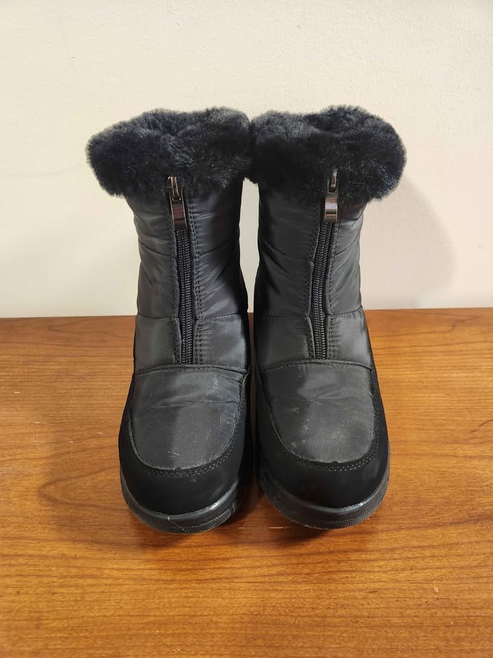 #cleanout Womens Winter Snow Boots Black Fur Zipper Elements