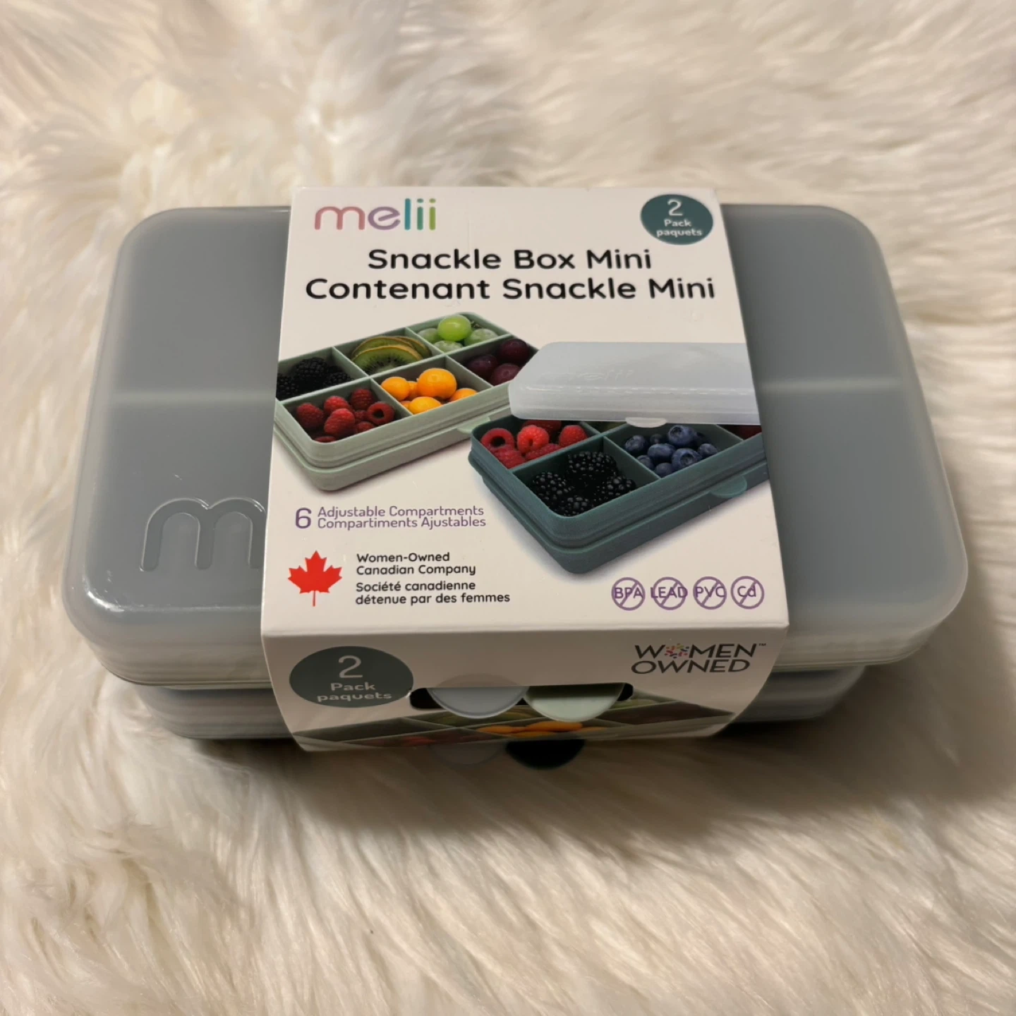 I have a brand new 2-pack of Melii Snackle Box Minis. They feature adjustable compartments, perfect for snacks, meals, and arts & crafts! These are designed by two moms and are proudly a Women-Owned Canadian company!