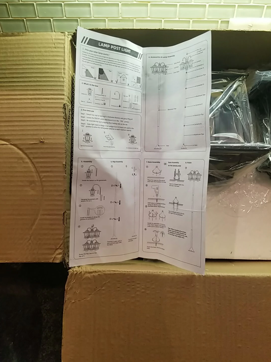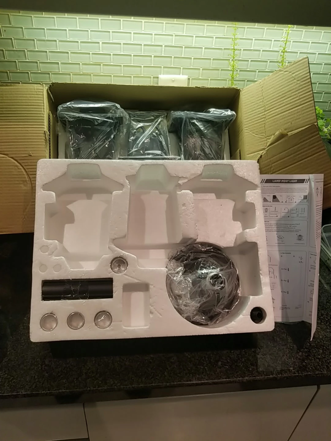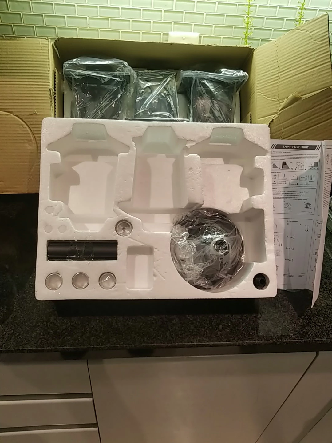 Selling a brand new solar lamp post light! It's still in its original box and includes all the components and instructions for assembly. This sleek black light will add a touch of elegance to your outdoor space