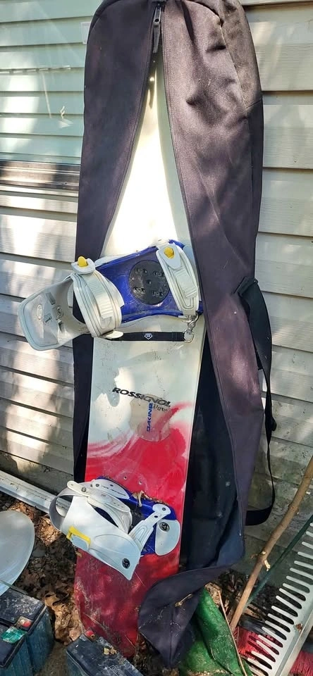 misc tools power cords and snow board with bag moving sale ladde