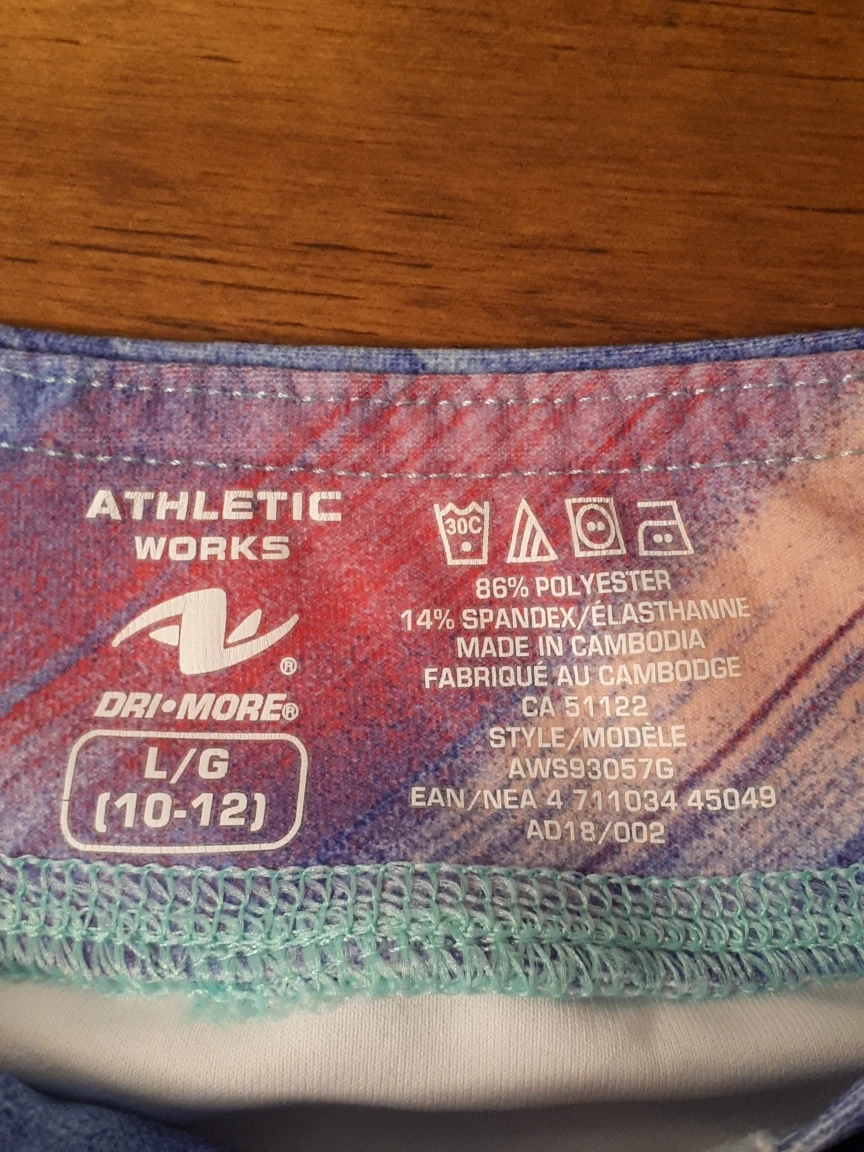 NWOT. These capri leggings are size L/G (10-12) from Athletic Works! They're made of 86% polyester and 14% spandex. Features inner key pocket in the waist area.