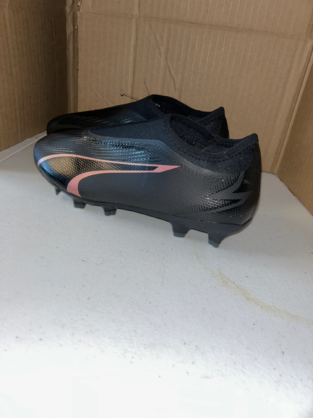 Selling a pair of Puma Ultra Match FG/AG Jr soccer cleats in a US size 3. These cleats are black with a pink Puma logo. They're in great shape and ready for the field!