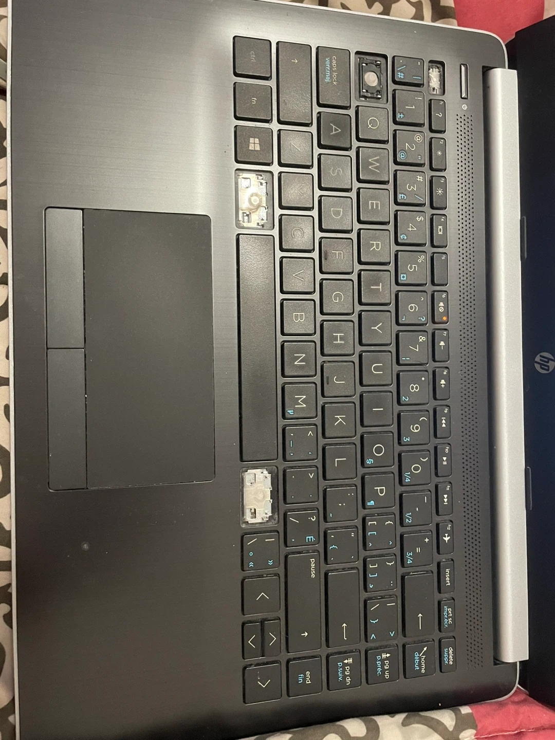 HP Laptop for school work, or for young children. Please note that some of the keys are missing, as shown in the pictures. But those keys still function when pressed on.