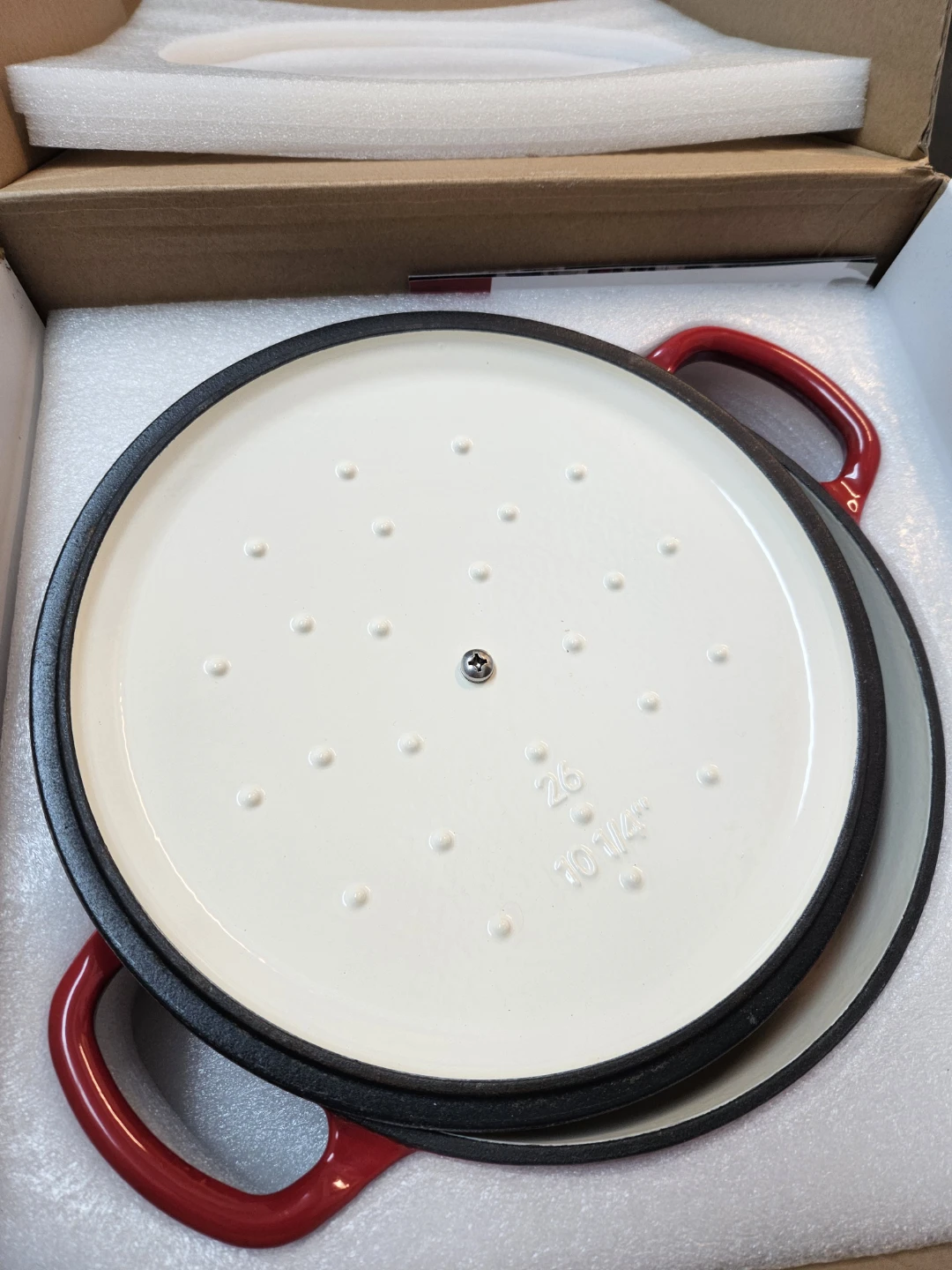 Lightly used and works great for meat and vegetable dishes that are healthy. NO Aluminum or toxic coating that gets in your food.