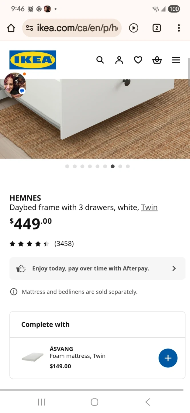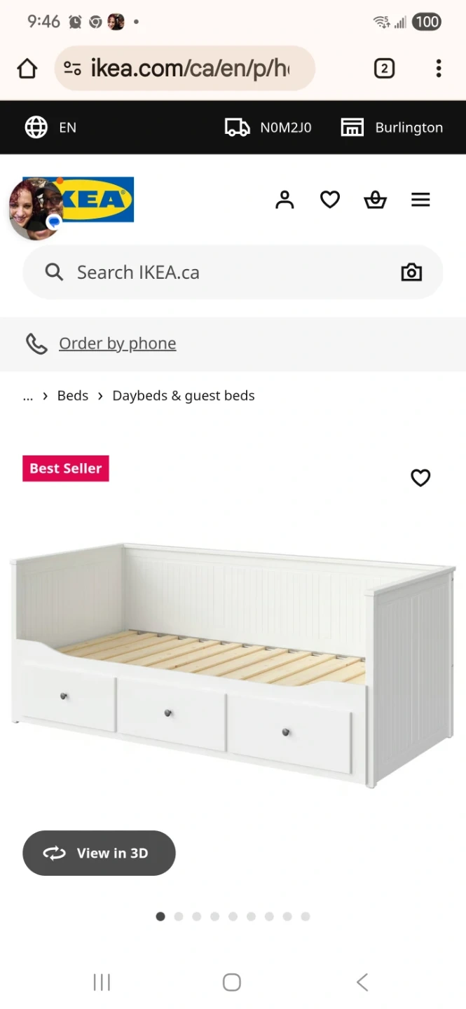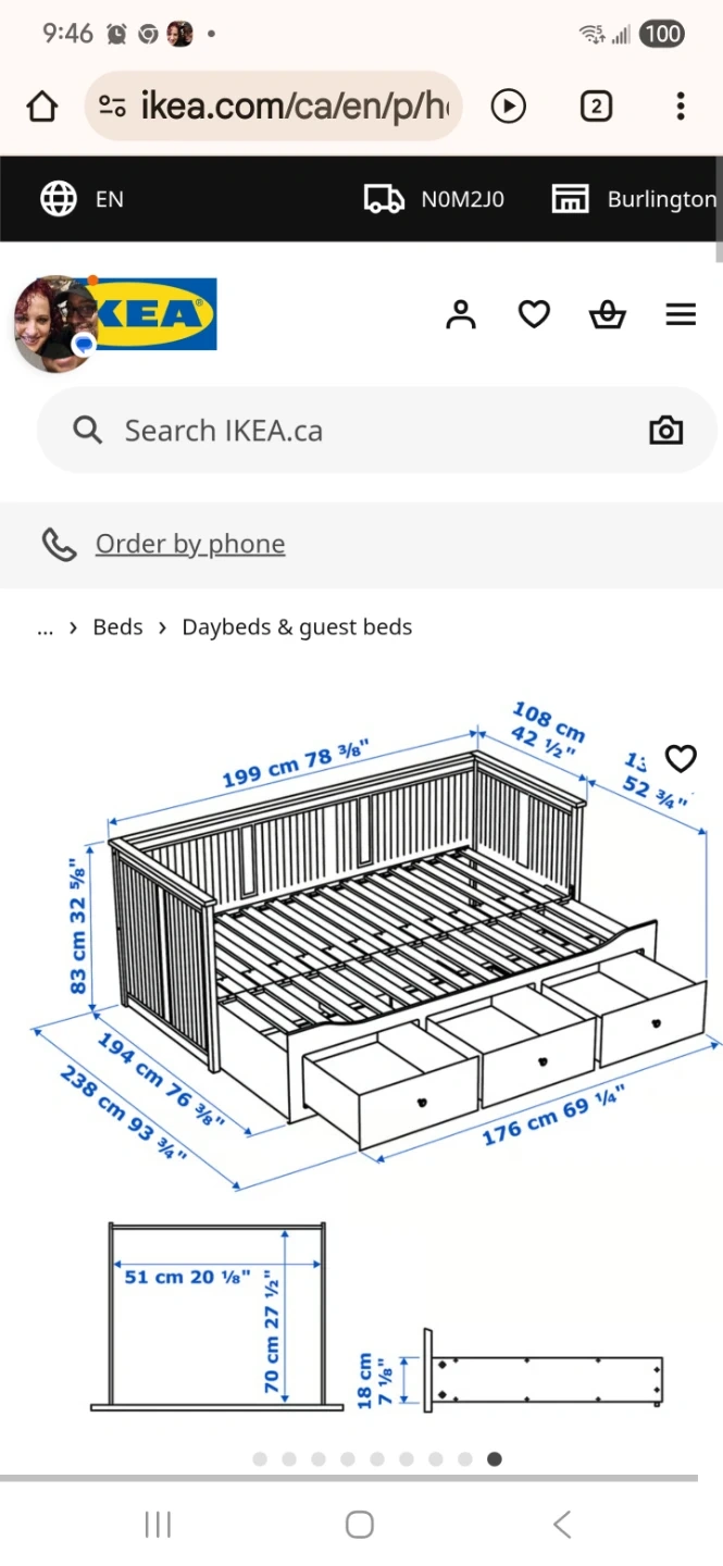 IKEA Hemnes daybed frame with three drawers in white! It's a twin size and originally cost $449. Bed only no mattresses . Dimensions are approximately 199 cm (78 3/8") in length, 108 cm (42 1/2") in width, and 83 cm (32 5/8") in height