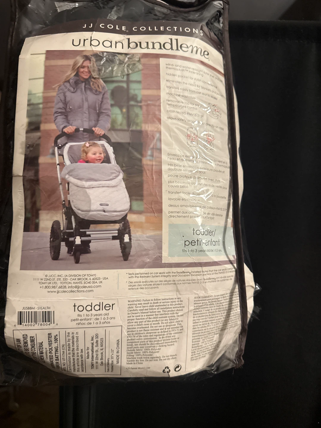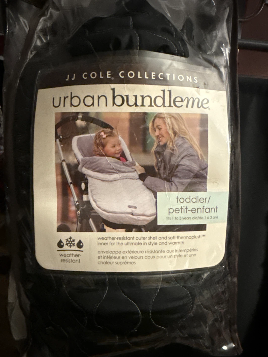 Keep your little one cozy with this JJ Cole Urban Bundleme! It's designed for toddlers and fits children from 1 to 3 years old. The outer shell is weather-resistant, and the inside is lined with soft thermaplush™ for ultimate warmth and style. It's also machine washable for easy cleaning! I added the picture of the actual price that I bought but I haven’t had the chance to use it. i’m located at Lawrence and Overture check my other listing please.