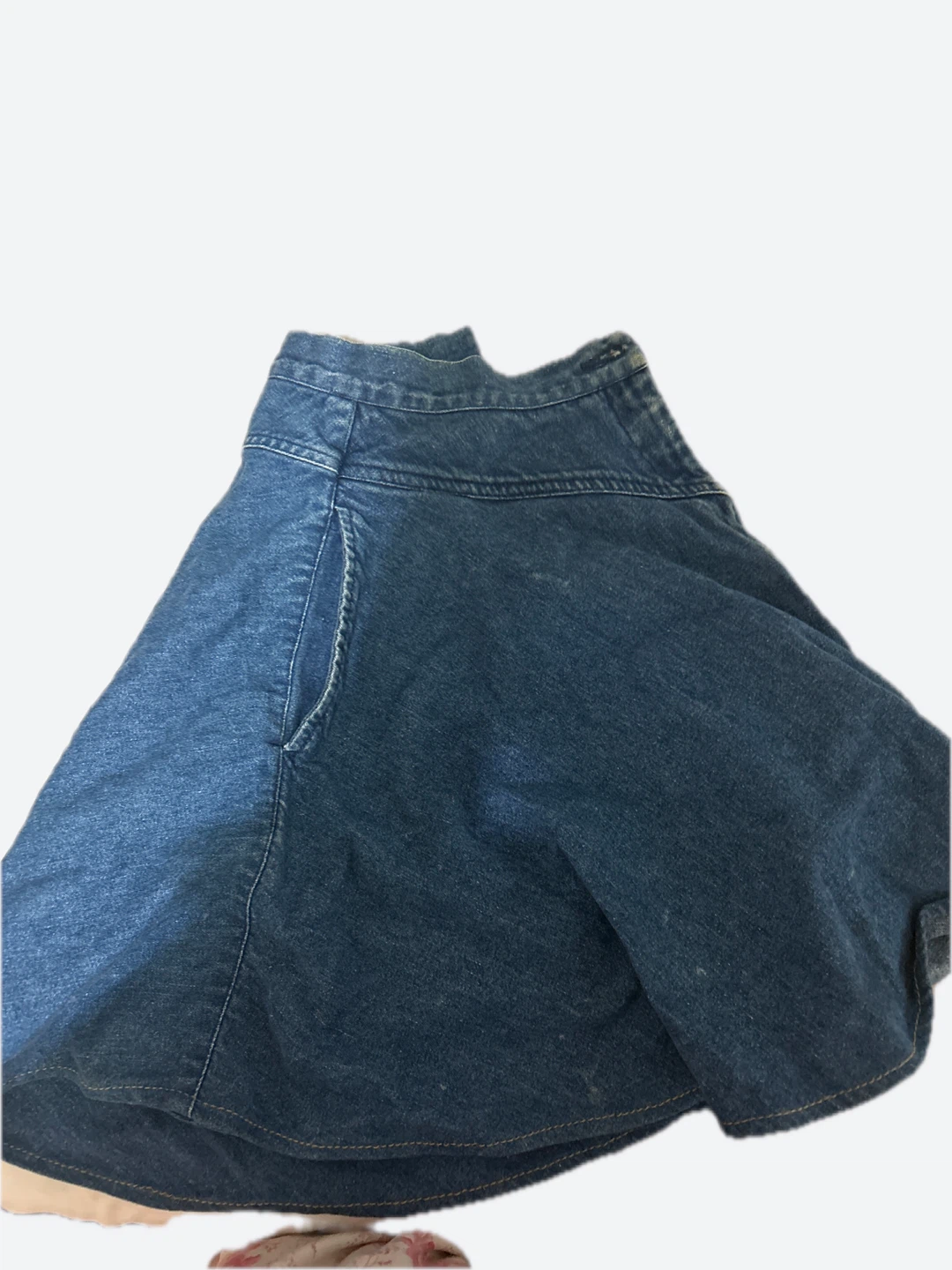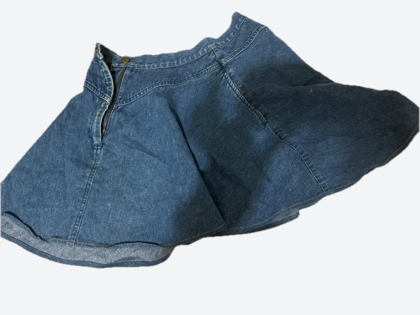 Selling a cute denim mini skirt! It features a flared design.