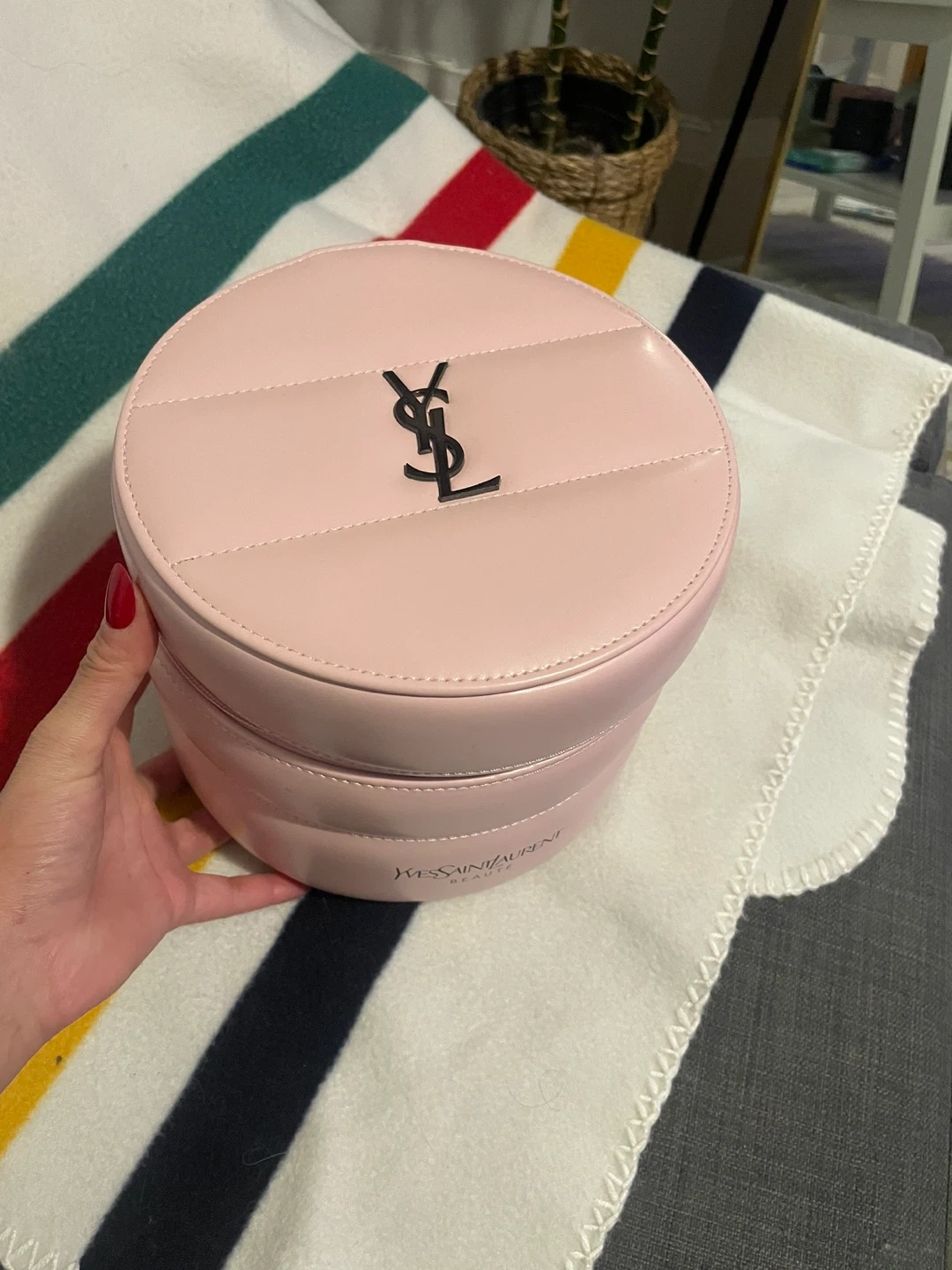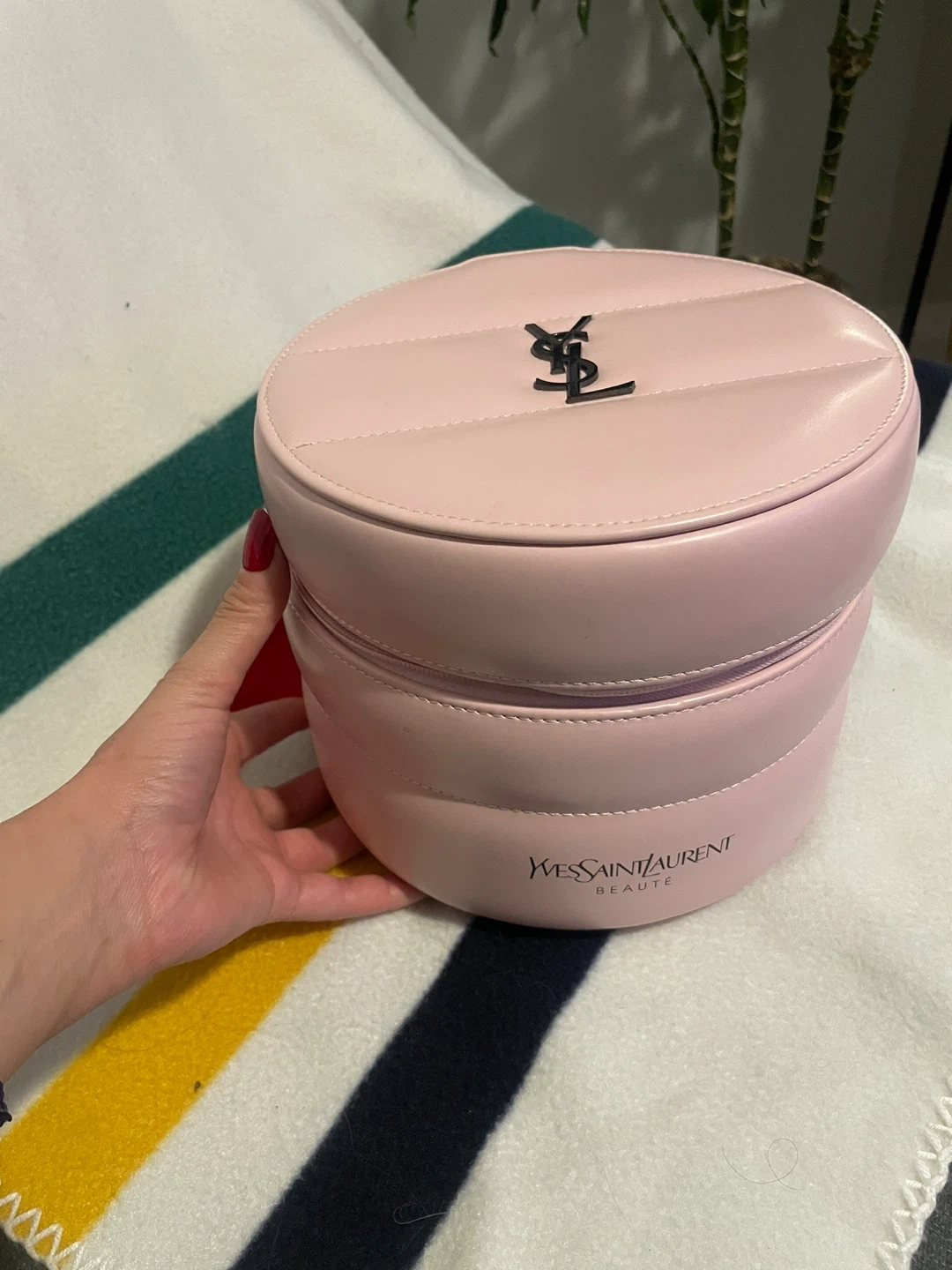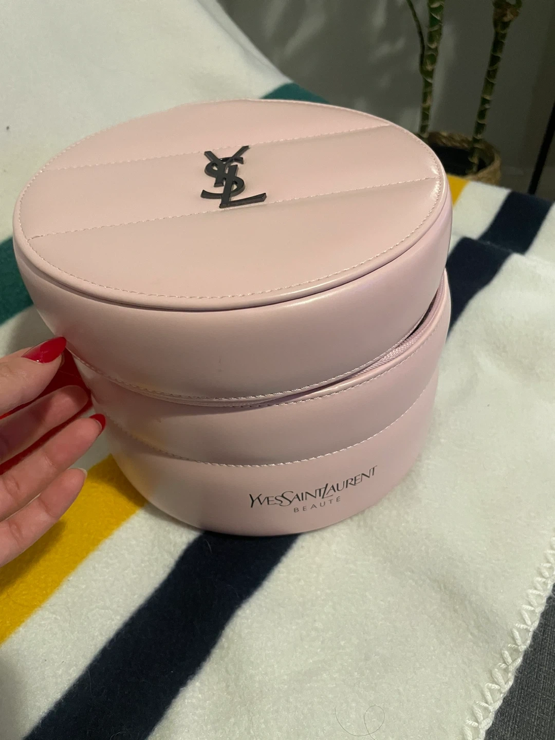Selling a super cute YSL Beaute vanity case in pink! It's in great condition and perfect for storing your makeup and skincare essentials. The case features the iconic YSL logo and a stylish, quilted design. It’s a great way to keep your beauty products organized and looking chic