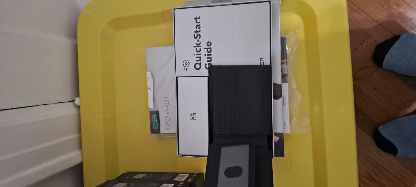 Selling a brand new ESR Geo Wallet with Find My in black! It's still in its original box and includes a quick-start guide. This wallet is designed with large storage capacity, anti-theft technology, and easy access. It's also thin and lightweight, making it easy to carry around. Great for keeping your cards and cash safe and secure!