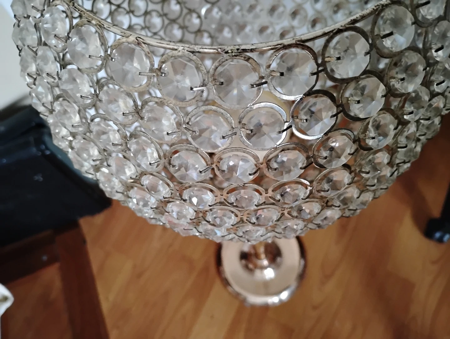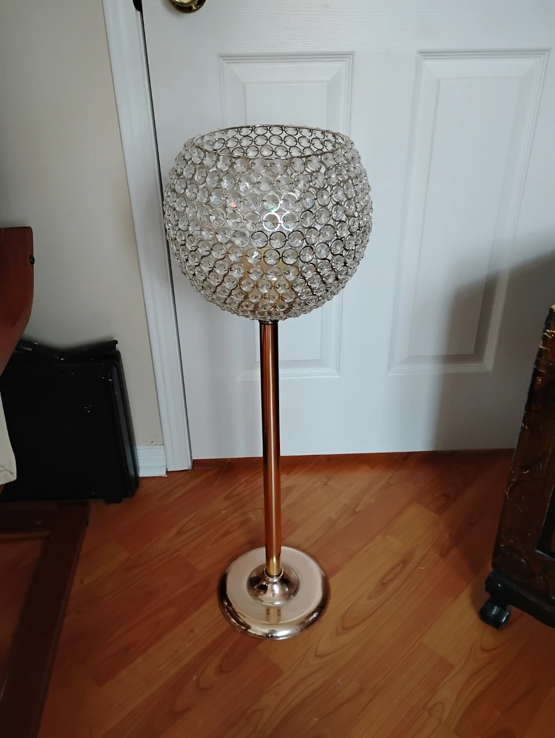 Here's a beautiful crystal globe floor lamp that adds a touch of elegance to any room! It features a spherical shade adorned with clear crystals, set on a sleek, metallic base. This lamp provides a soft, ambient light, perfect for creating a cozy atmosphere in your living space
