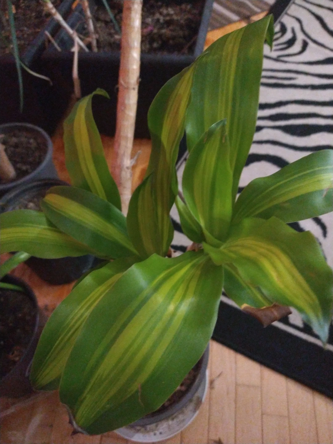 Selling a healthy Dracaena fragrans plant! It's got vibrant green and yellow striped leaves and is ready to brighten up your space. It's been well taken care of and is looking for a new home