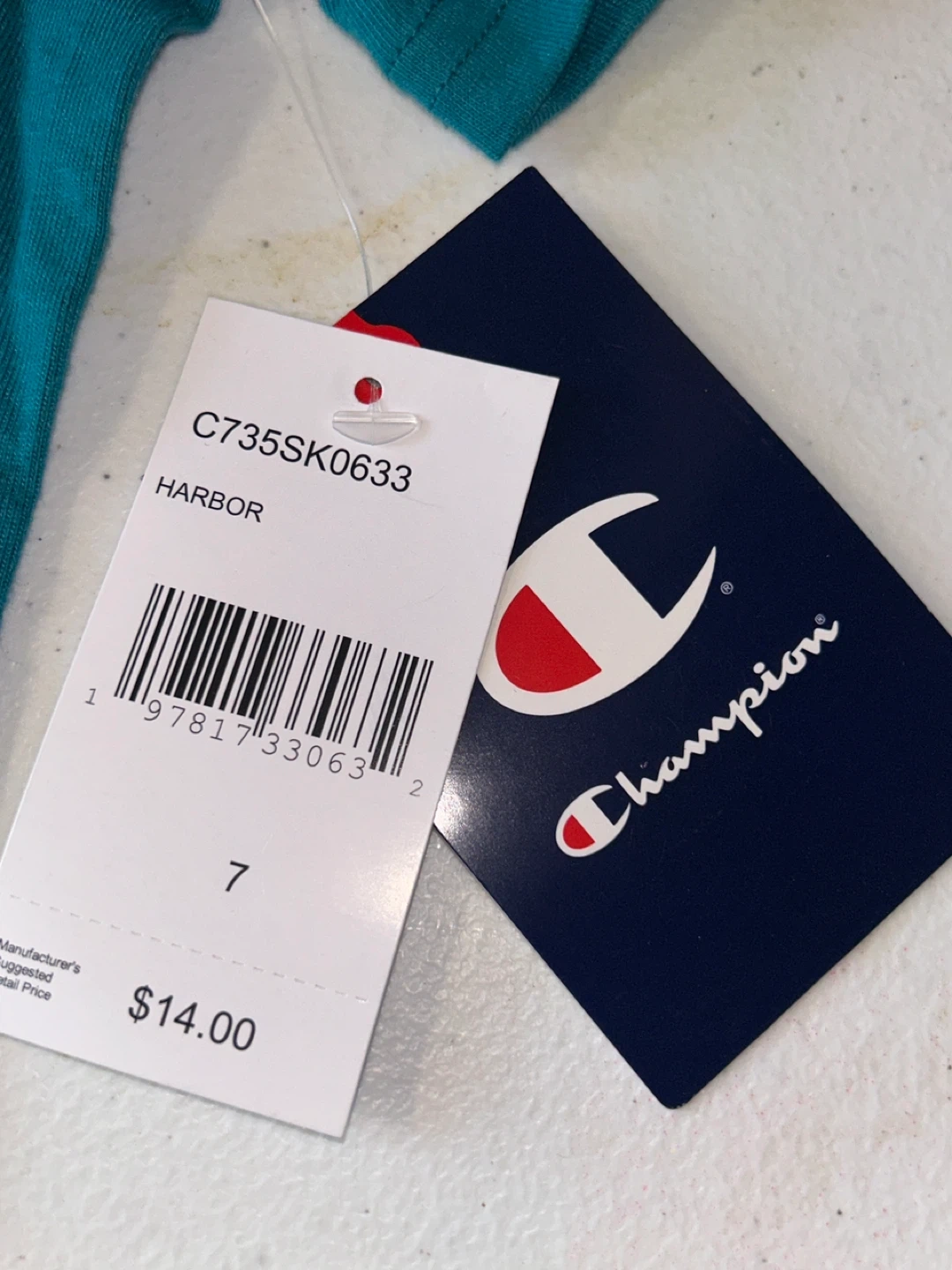 I'm selling a brand new Champion t-shirt in a vibrant harbor color! It's a size 7 and comes with the original tag still attached. The tag shows it originally retailed for $14. Perfect for your little one!