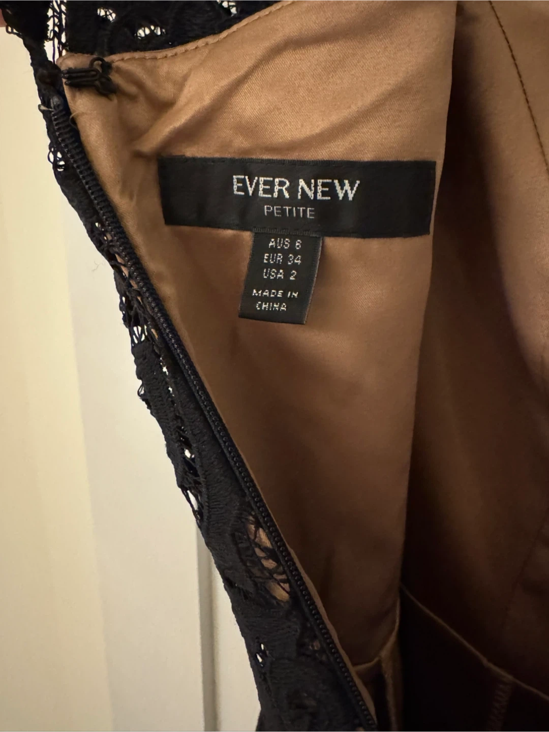 Selling a beautiful black lace dress with a nude lining from Ever New Petite. It's a size 2 (US). The dress is in great condition and perfect for a special occasion!