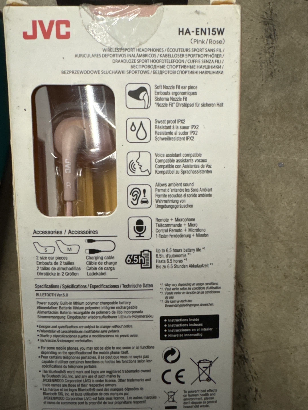 Selling a brand new pair of JVC Gumy Sport Wireless Earphones in pink! They come in the original box and include all accessories. These are sweatproof and have a voice assistant compatible feature, perfect for workouts or on-the-go listening. Enjoy up to 6.5 hours of battery life on a single charge. Includes small and medium size ear pieces for a comfortable fit!