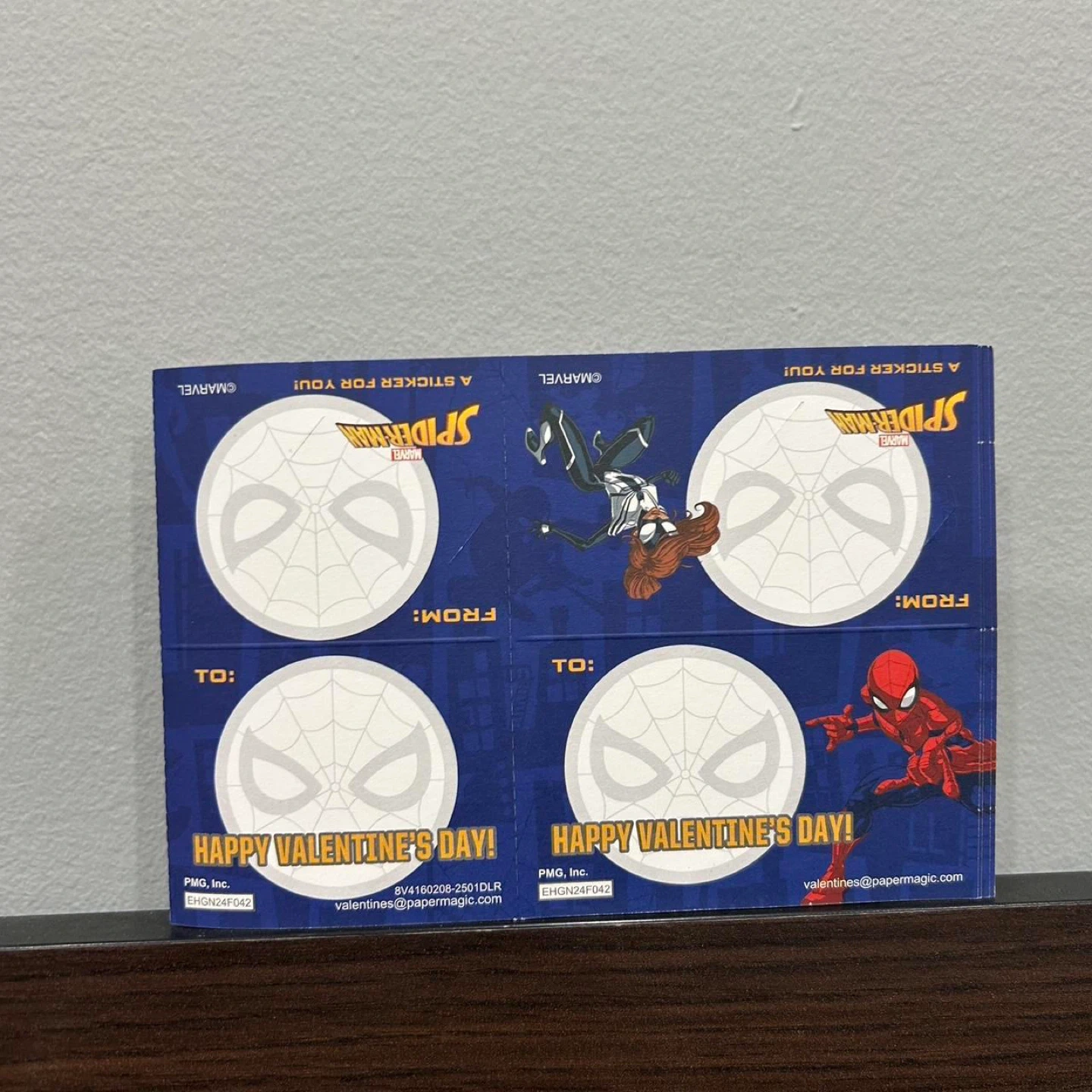 Spider-man themed valentines pack. Comes with 32 valentines, 32 theme stickers, 48 heart stickers, and a bonus card for teacher. Brand new! No box. So cute! Have a Marvel hero one available as well. superhero valentines, marvel stickers, spiderman valentines, kids valentines, comic book style, novelty valentines, party favors, animated characters, colorful design, collectible valentines