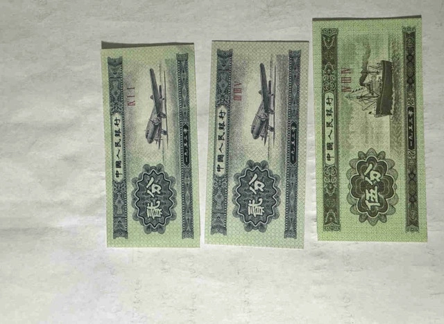 Selling a small set of vintage Chinese banknotes from the early People’s Republic era. These notes feature classic designs including the airplane (1 分), and ship (5 分). Great for collectors of world currency, Asian history, or cultural antiques. Included: