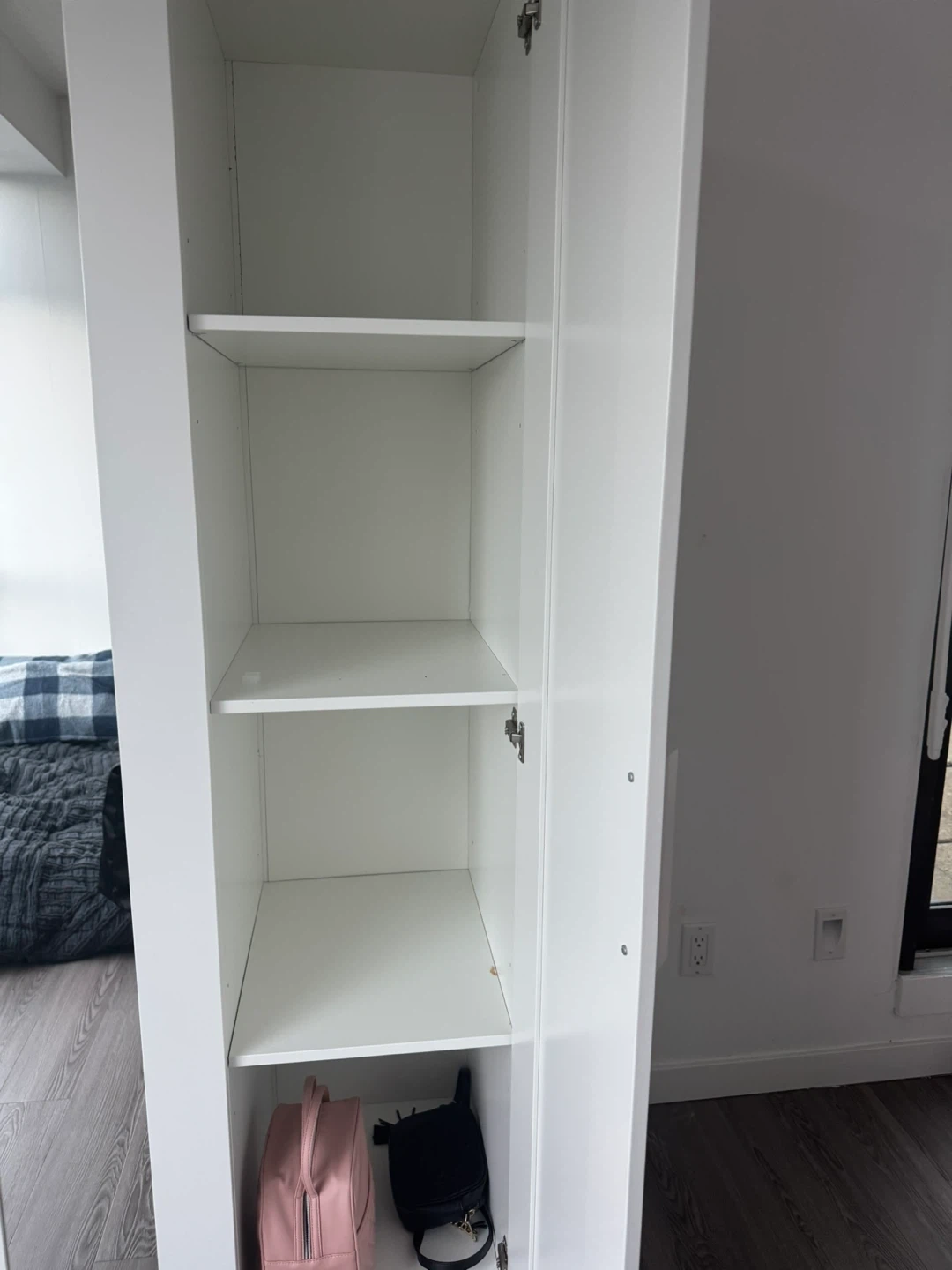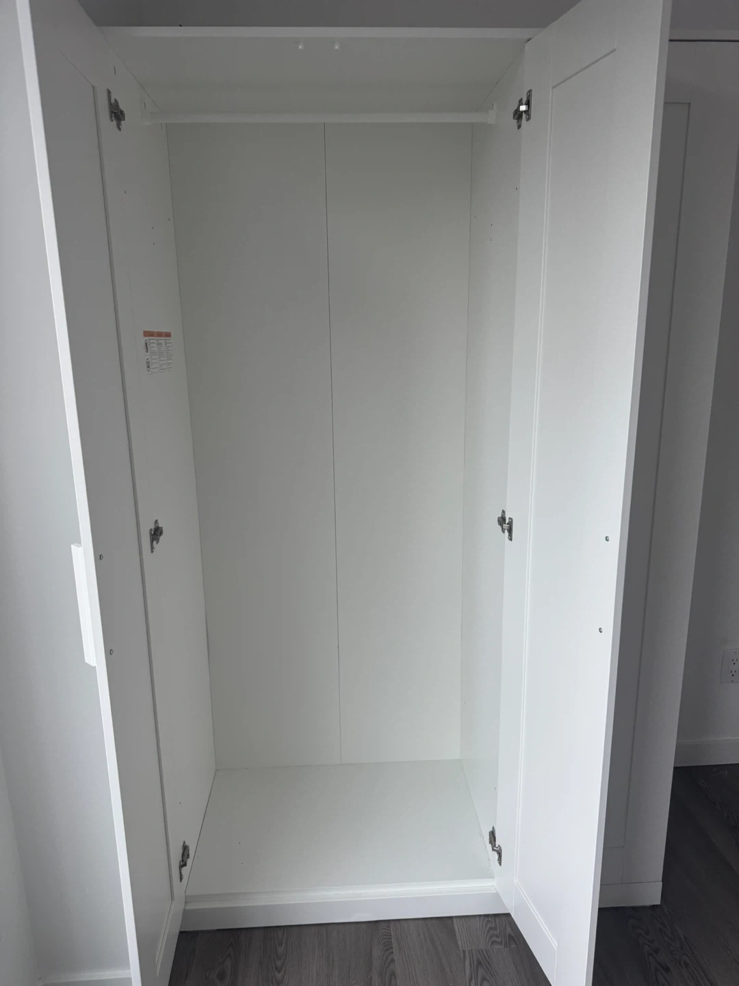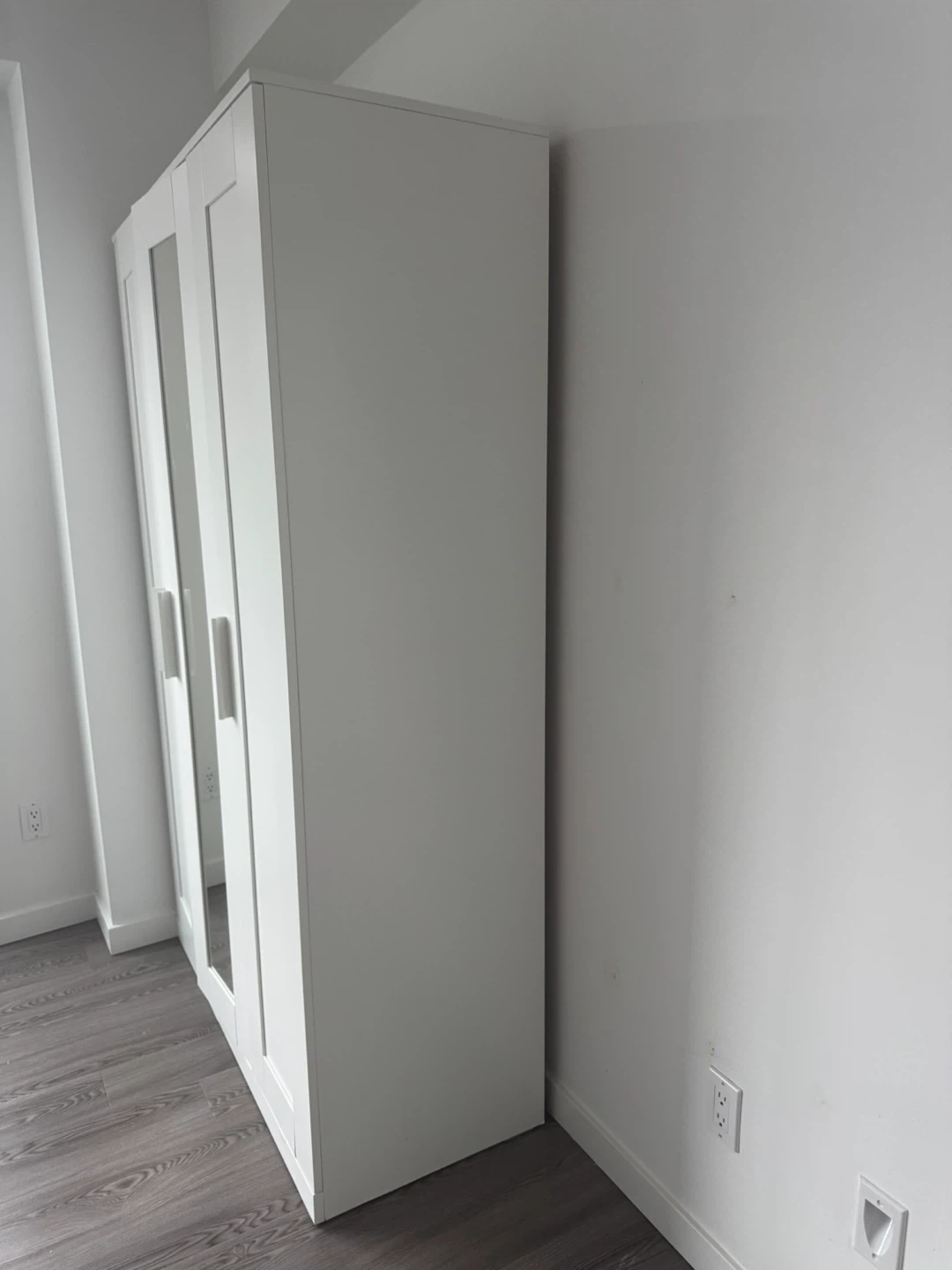Selling an IKEA white three-door wardrobe in great condition. Only used for 6 months and was professionally installed. Very sturdy, clean, and well-maintained.