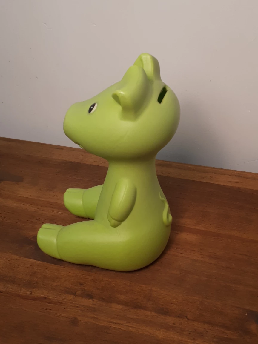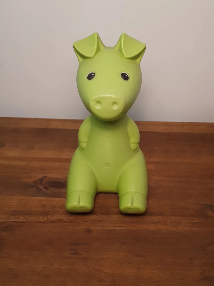 Selling a cute green piggy bank! It's in great condition and ready to help someone save their coins. It's a charming piece that would look great in a kids room or on a desk