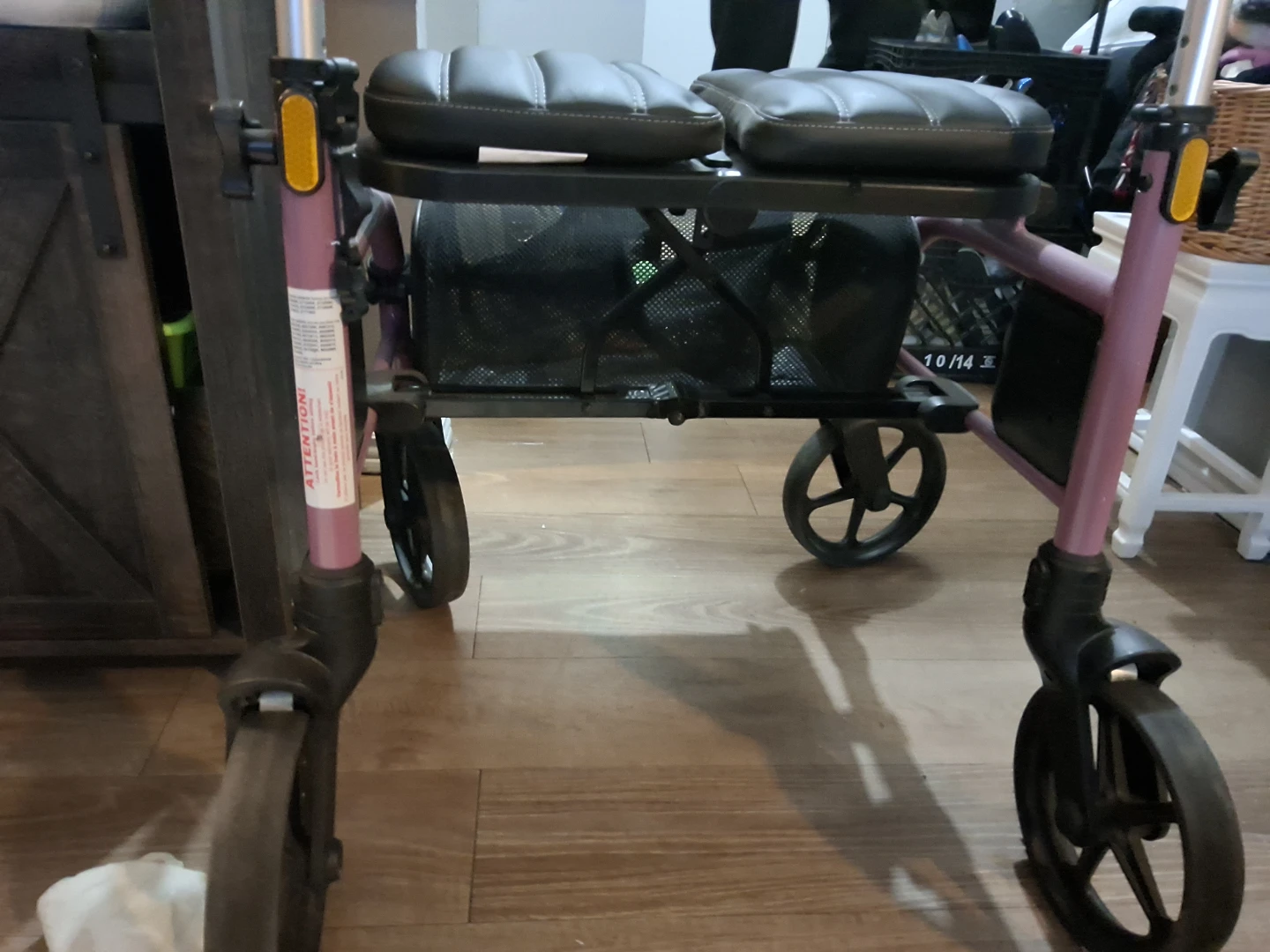 It has a comfortable seat and a convenient basket for storage. Perfect for anyone needing a little extra support while getting around! The breaks on it work great and it goes at any speed ypu want.